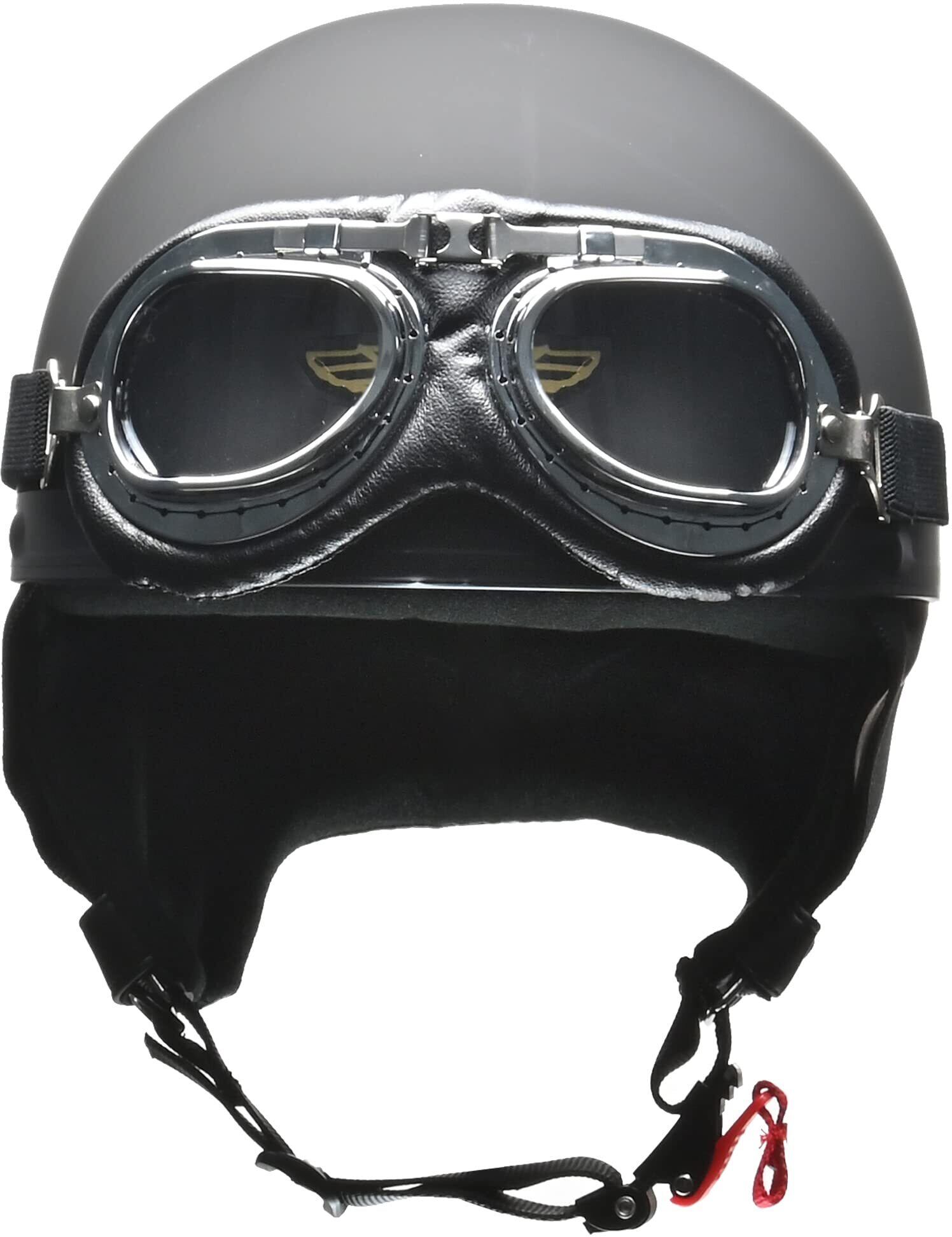 イヤーカバーと角型ゴーグルを装着した正統派ビンテージヘルメット。