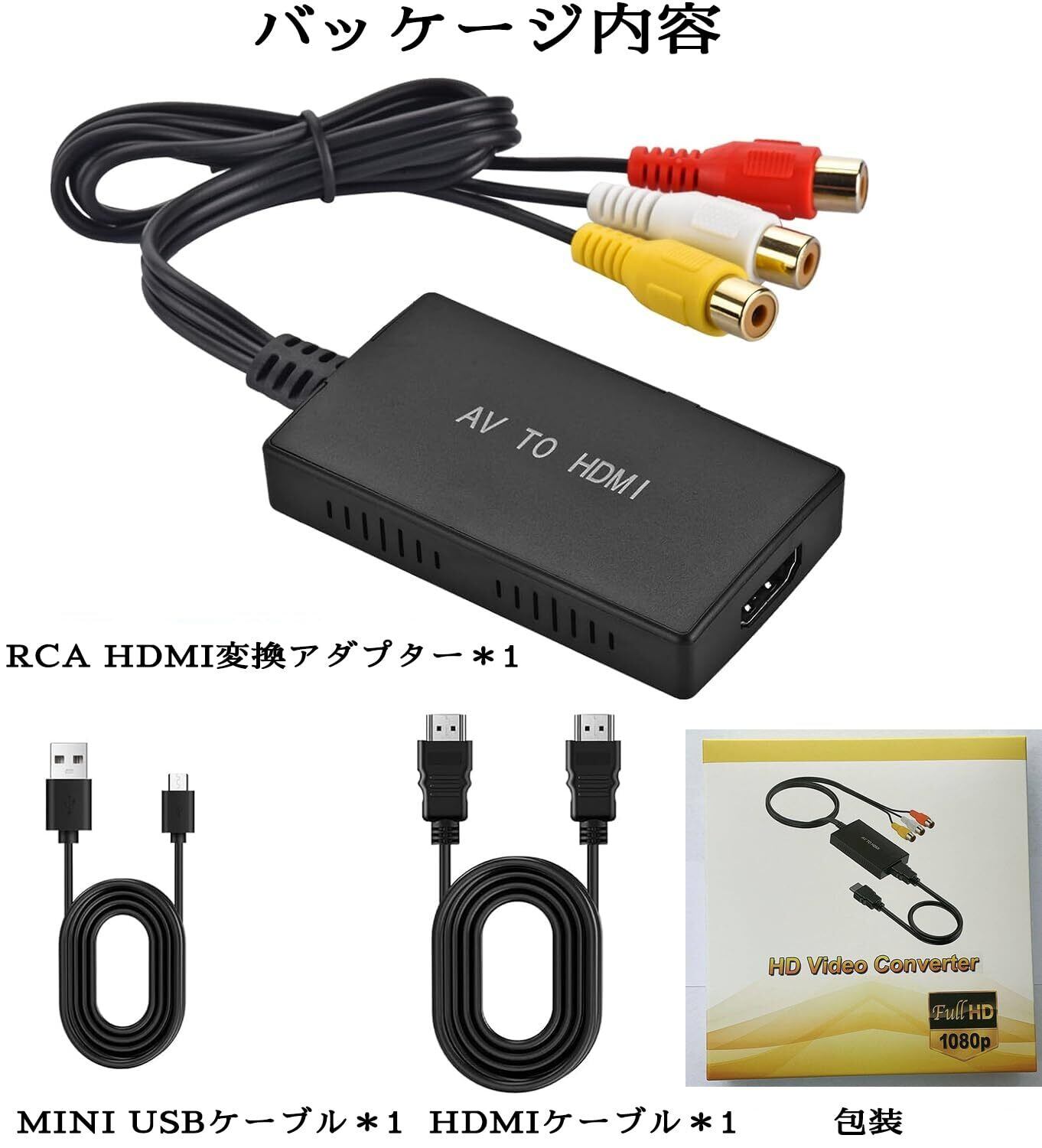 RCA to HDMI 変換コンバーター AV コンポジット hdmi 変換アダプタ 3色端子 hdmi 変換 古いゲーム機(XBOX、PS1、PS2、SNES、Wii、N64)古いレコーダー(DVD、VCR、VHS)など機器 3色コードからHDMI 720P/1080P 変換