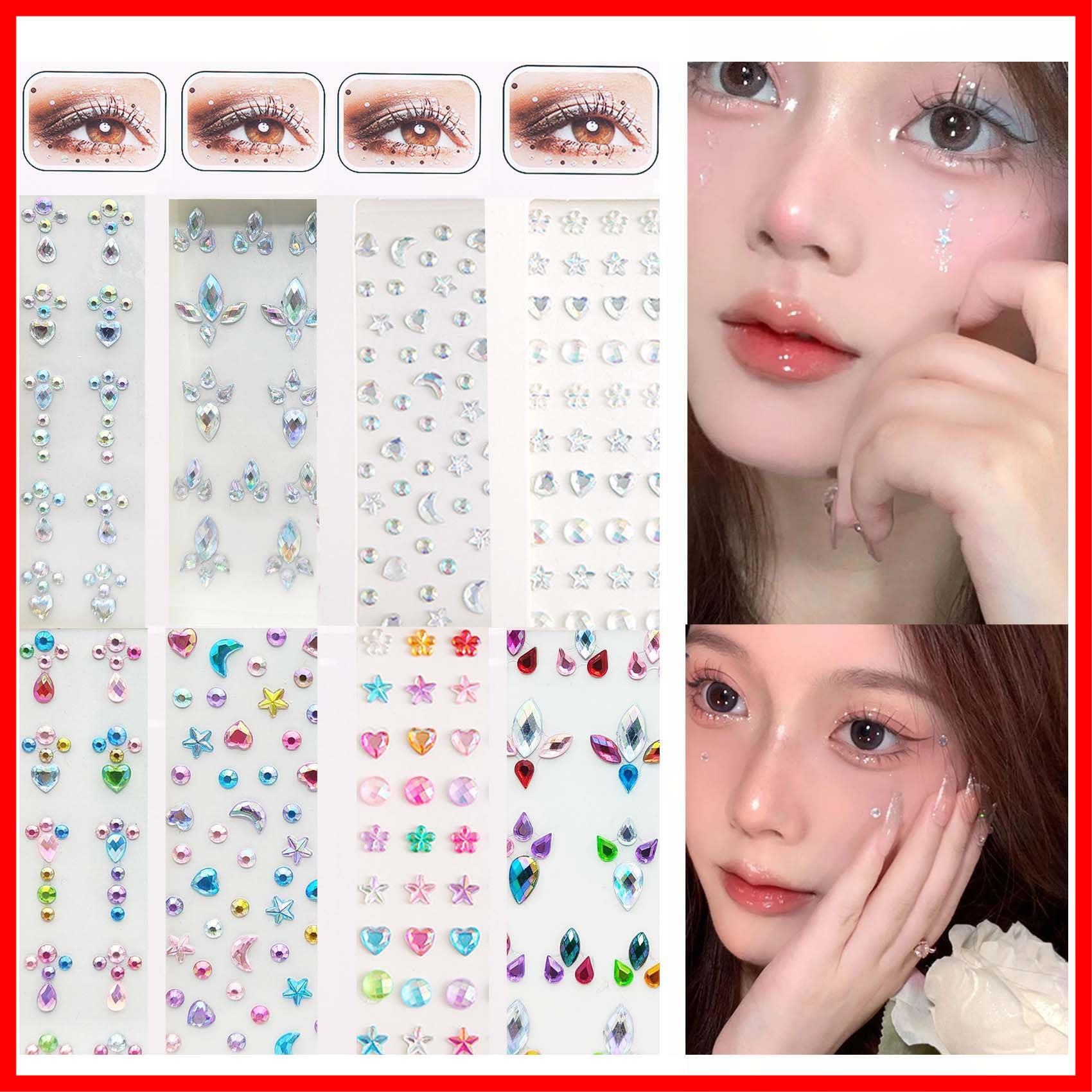 【高品質】環境にやさしく健康的な樹脂製のラインストーンで、無害で無毒で、お肌に害を及ぼすことはありません。フェイシャルジェムステッカーは、顔、体、爪に安全に使用できます。
