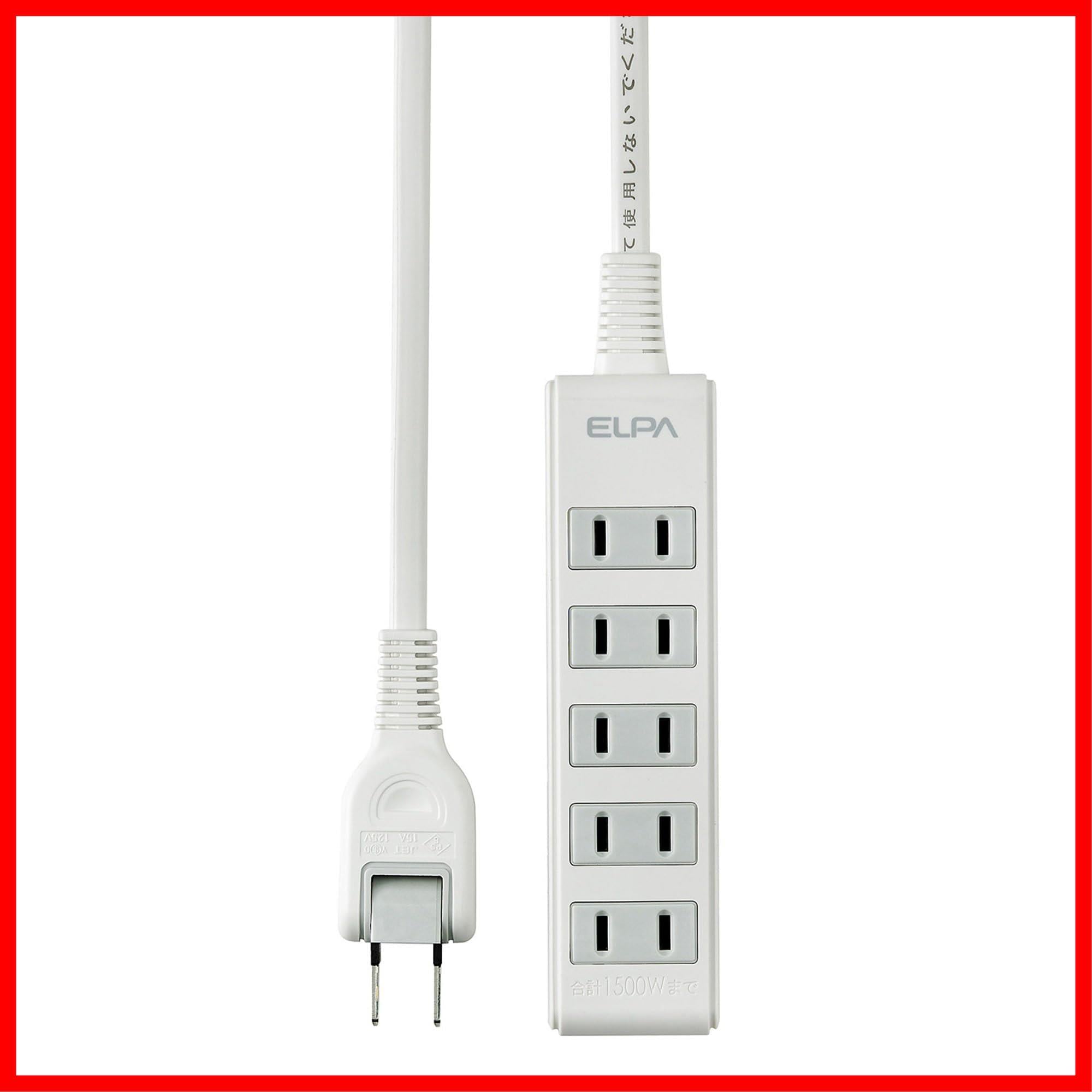 エルパ (ELPA) コンパクトタップ 電源タップ 延長コード 125V 5個口 1.0m ホワイト LPT-501N(W)