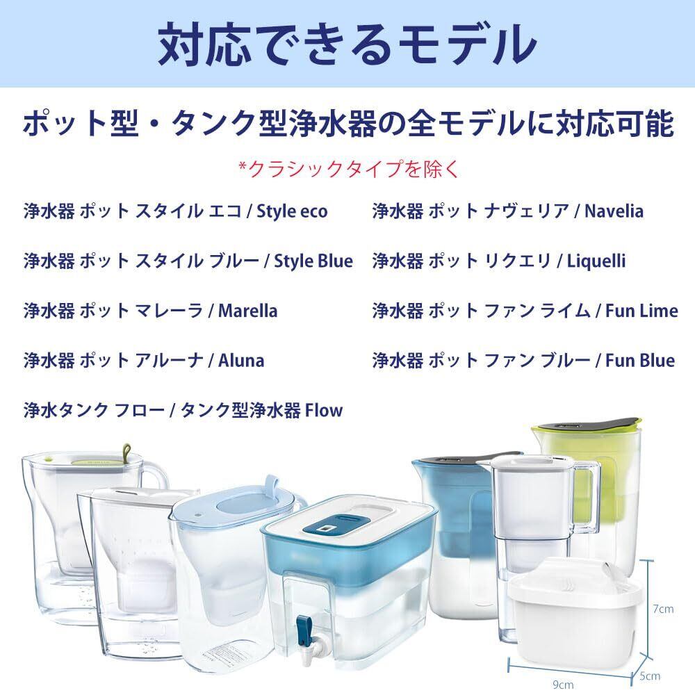 【商品仕樣・2個セット】浄水器交換用カートリッジの互換品です。サイズは約幅9cm×奥行5cm×高さ7cmです。材質:ポリプロピレン、PET、活性炭。ブリタのポット型・タンク型浄水器の全モデルにご使用いただけます。(クラシックタイプを除く)