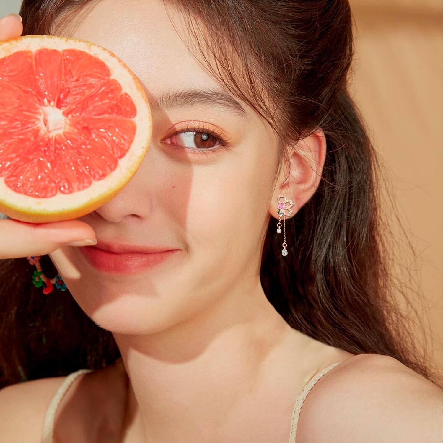 【外せるチェーン】チェーンを着けると人々の目線をより集めやすいし、可憐さをアピールします。もっと落ち着いた感じが欲しいならチェーンを外して、キレイな桜ピアスが出来上がりです。2wayで着けるので、その日の気分に任せば良いです。