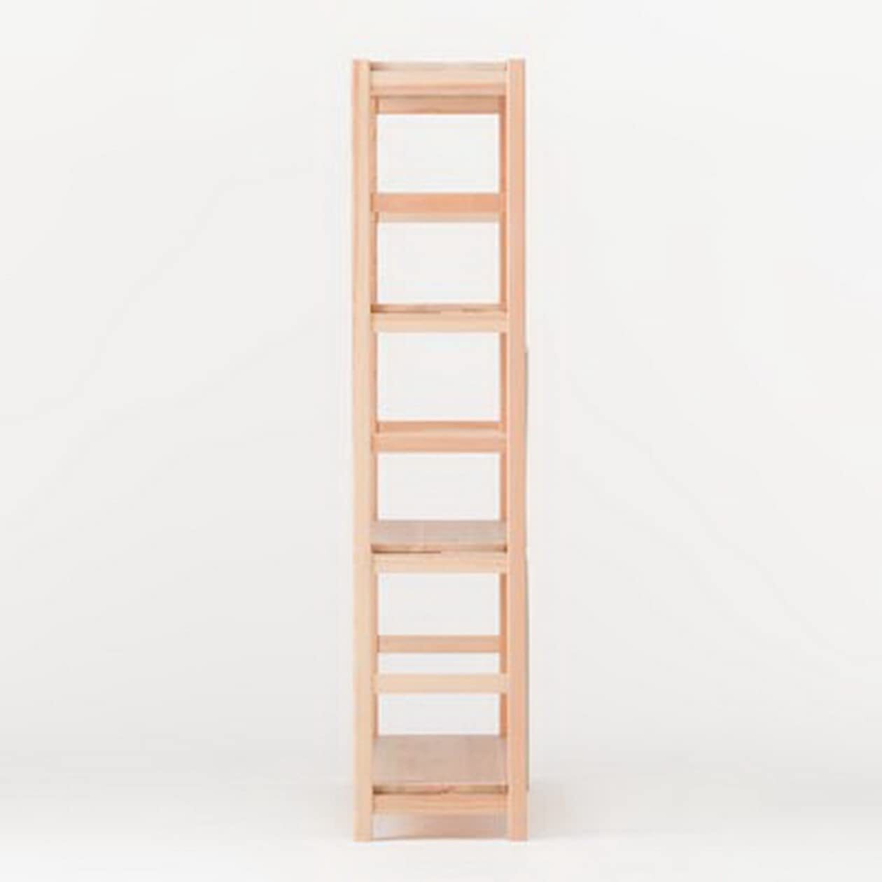 素材 : 帆立 : パイン無垢材・棚板 : パイン無垢集成材・クロスバー、メタルガイド : 金属 (鋼) ・表面加工 : 木部 : アクリル樹脂UV塗装・スチール部 : めっき (亜鉛) ・全耐荷重 : 25kg・棚板1枚あたりの耐荷重 : 15kg (全体で均等に荷重をかけた場合) ・廃棄方法 : 各自治体に確認