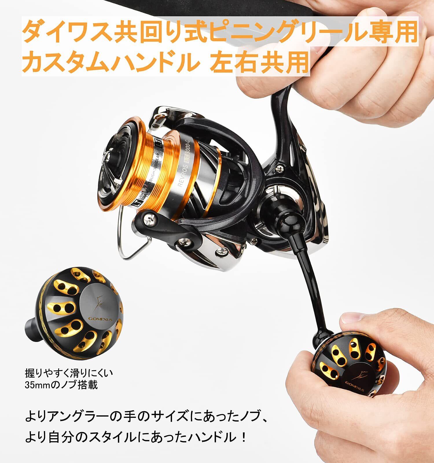 ゴメクサス ハンドル CJT-A30 35 ライドゲームハンドル 18 レガリス LT 20 レブロス フリームス 2500~3000 番 対応 共回り式 ダイワ スピニングリール レブロスノブ ショットハンドル シングルハンドル 左右共用 57mm ハンドルノブ付き カスタムパーツ (ブラックシルバー) (ダイワ用, 共回り式のスピニングリール適合, ブラックゴールド)