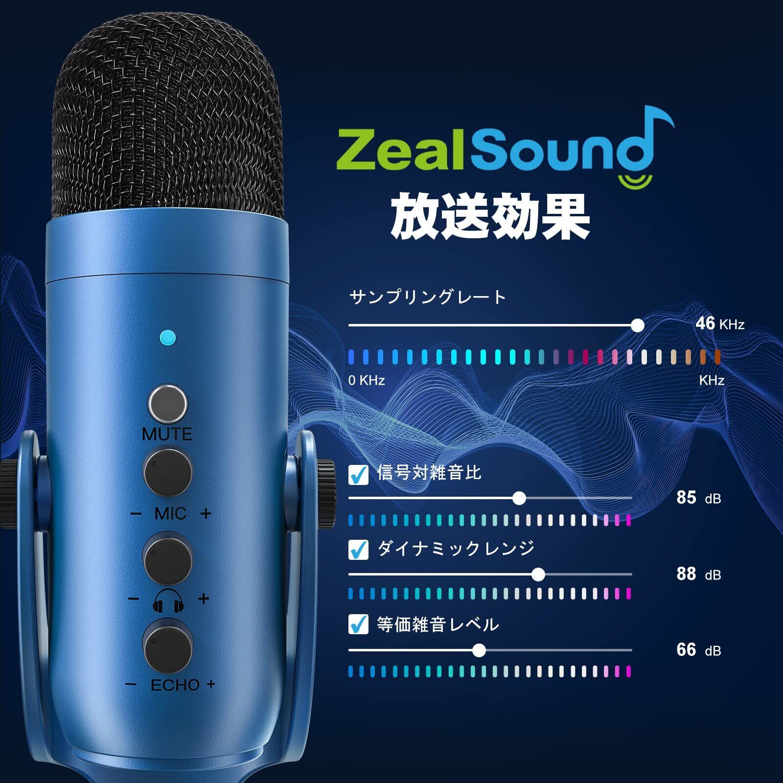 ZealSound USBマイク コンデンサーマイク PC用 卓上マイク 配信用 マイク 単一指向性 録音/ライブ配信/ゲーム実況/会議用 マイク エコー機能付き 高感度集音マイク YouTube/Skype/LINE 生放送 USB ミニマイク Windows/Mac/Android/PS4/PS5対応(青色)