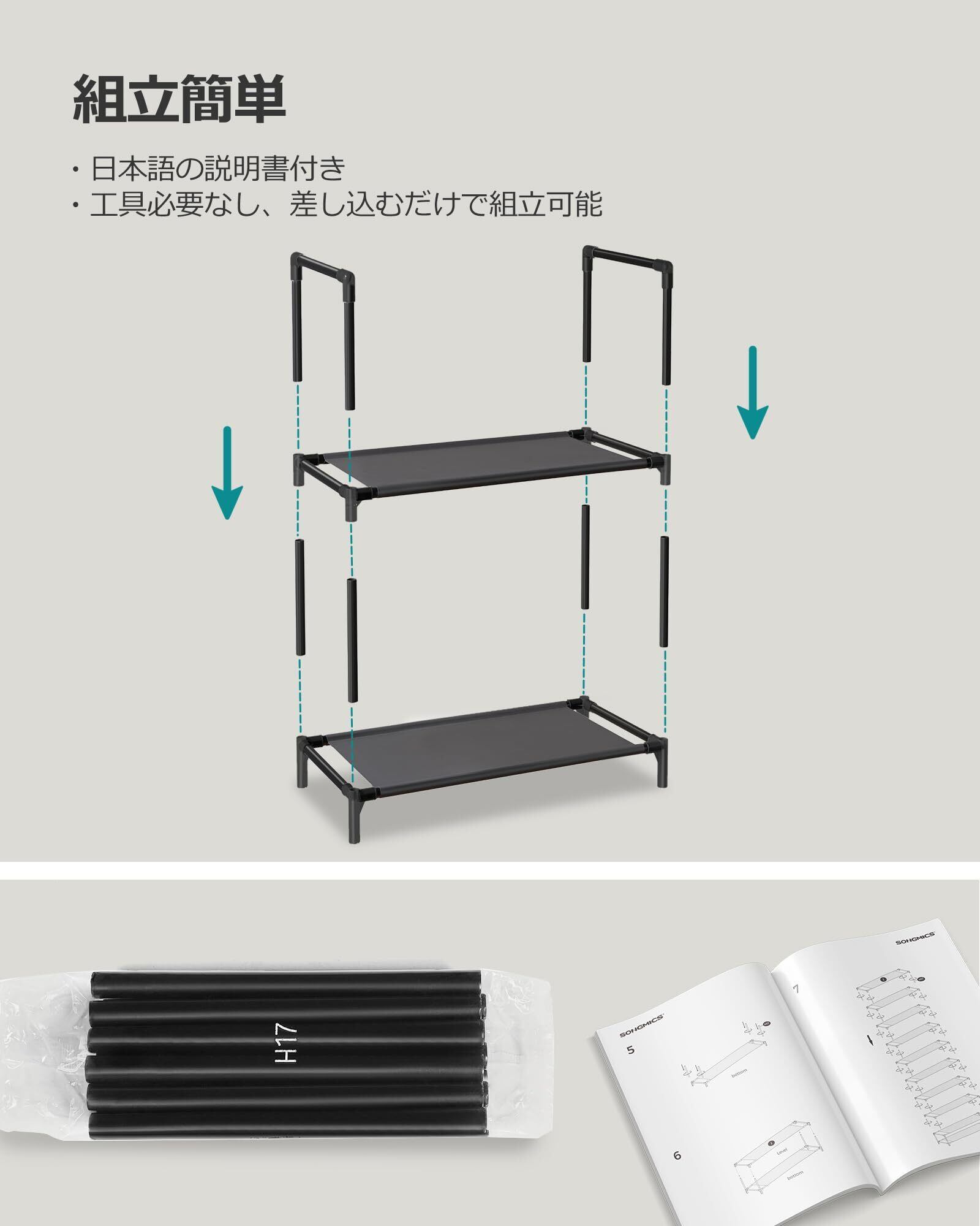 【組立簡単】 スチールパイプをジョイントに差し込むだけで、女性一人でも、簡単にできます(説明書付き) 。棚はハイヒール、バレリーナ、子供用の靴などいろんな靴に十分なスペースを提供します