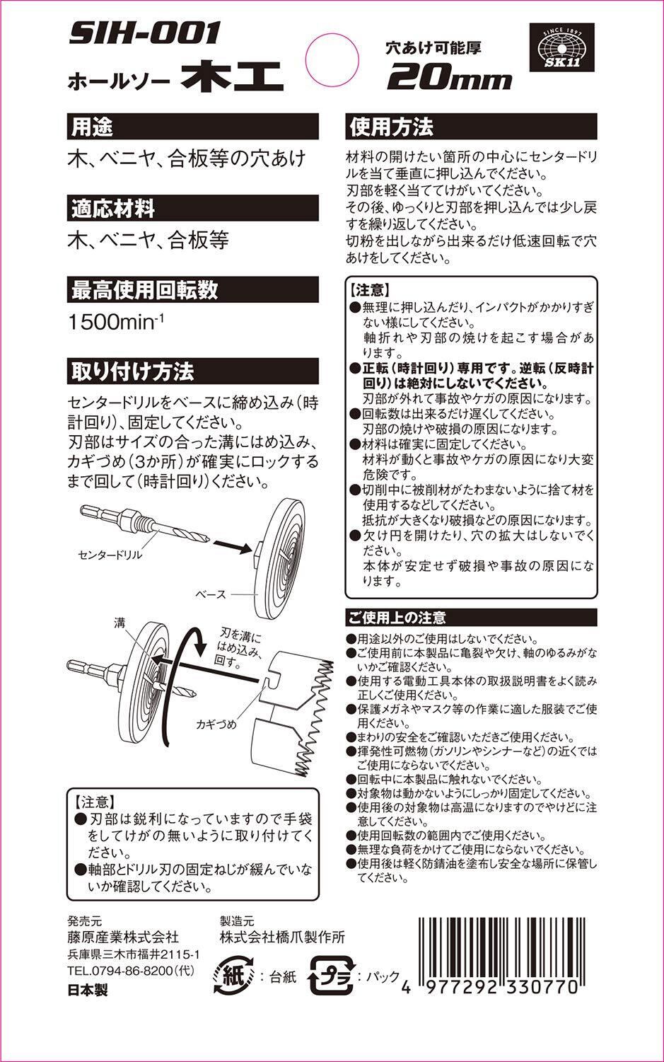 SK11(エスケー11) インパクト用 木工用ホールソー 8枚刃 SIH-001