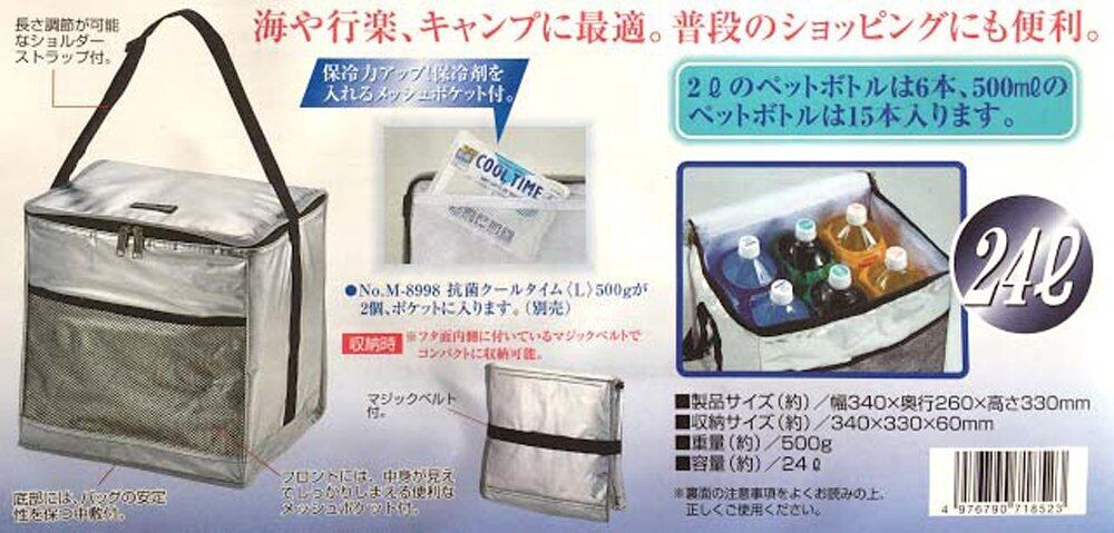 材質: 本体:表地=アルミ蒸着シート、裏地=EVA(ホワイト)、断熱材=ポリエチレンフォーム(6mm厚)、中敷=ポリエチレン(1.0mm厚)
