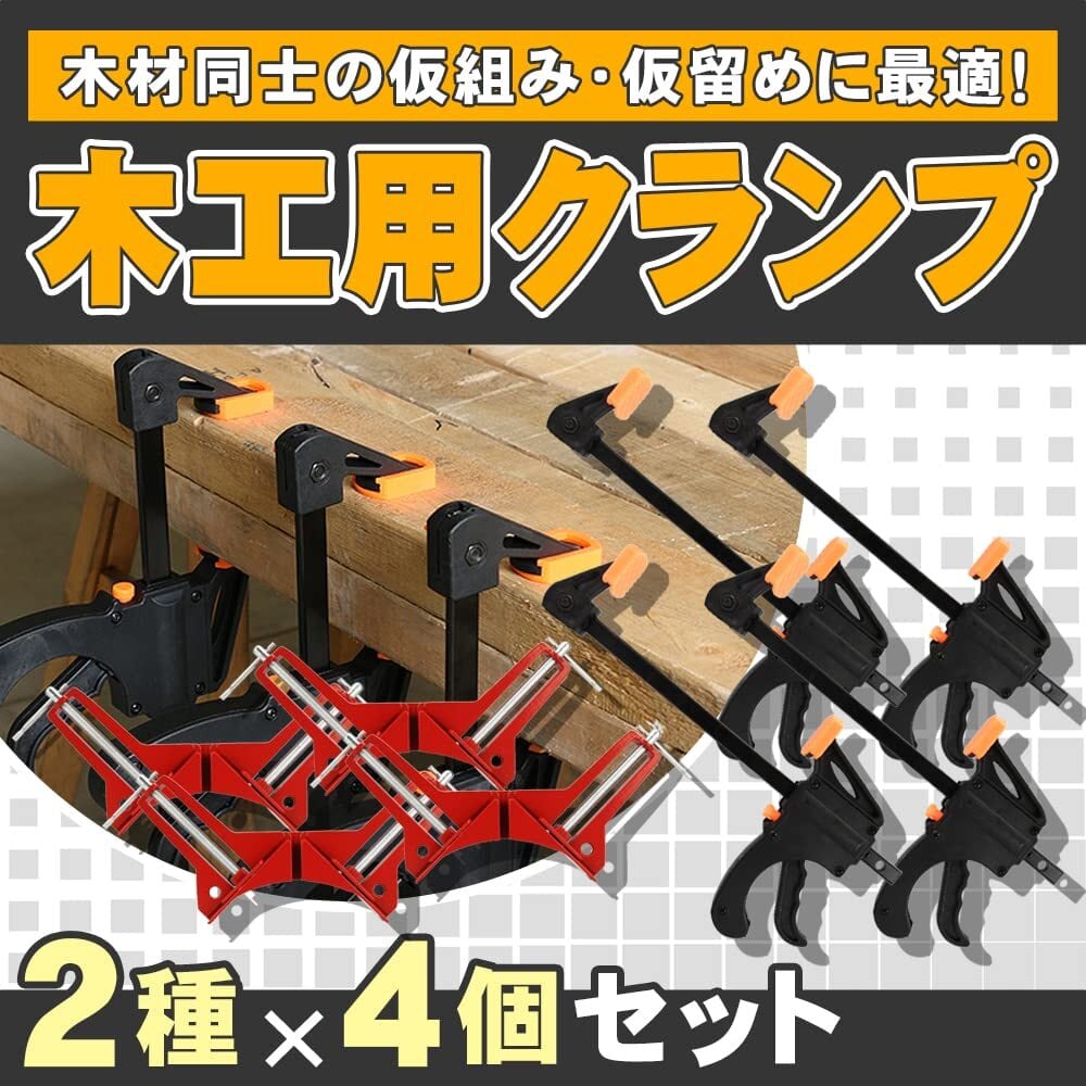 【DIYのプロ監修】 木工用クランプ 2種 コーナー F型 ラチェットバー 直角 片手操作 木材 仮止め 拡張 固定用具 DIY作業 (2種セット8個)