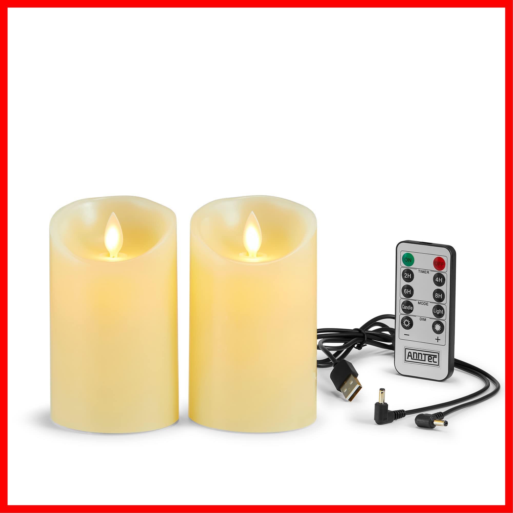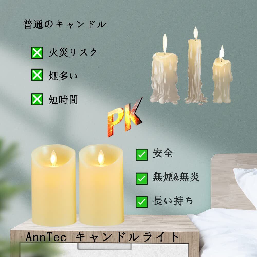 キャンドルライト【2点セット】 led キャンドル ledキャンドルライトUSB充電式 暖色光 専用リモコン付 自動消灯タイマー AnnTec (直径7.5cm×高さ10cm)