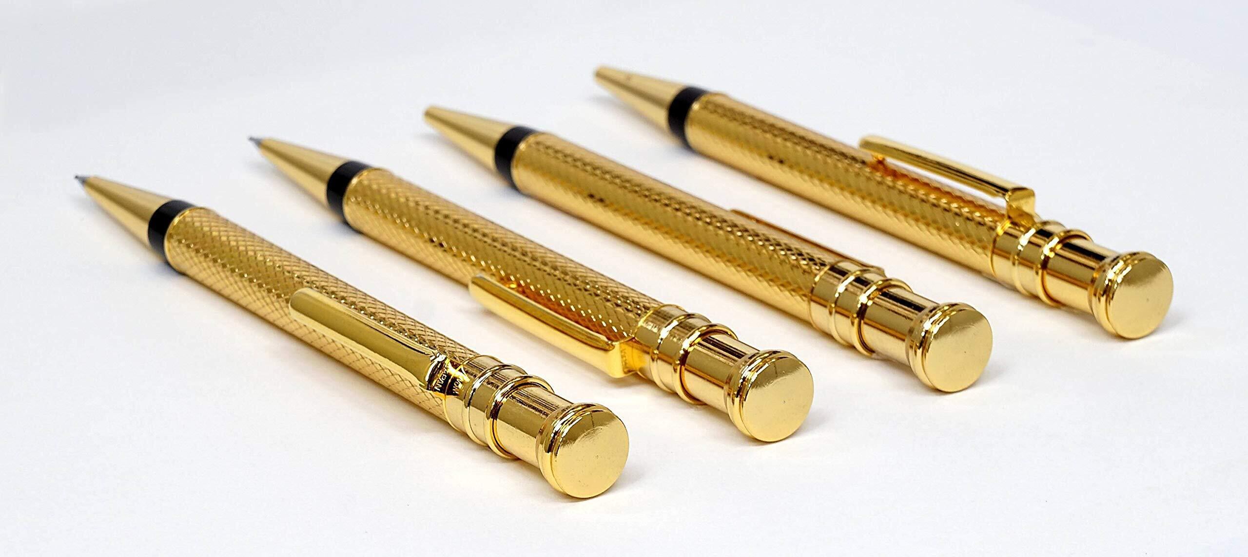 日本製 Z55金格子加工 太軸ユーロスタイルシャープペン 2本パック 金 P1-Z55S-2