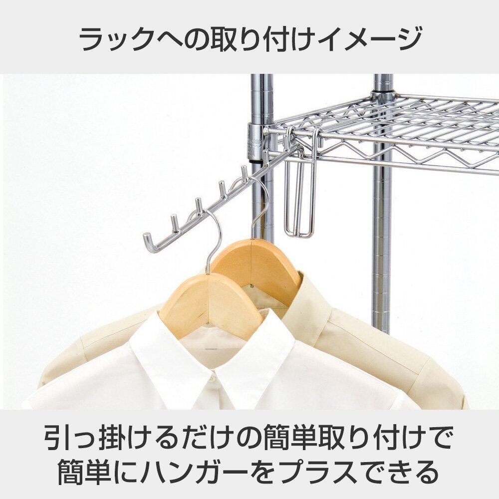 ●シェルフ(棚)側面やネット、ワイヤーバーなどに取付けて、洋服やバック等を掛けられます●サイズ:ハンガー長さ20cm●材質:スチール(クロームメッキ)●ご注文間違い等のお客様都合による返品・交換はお受けできませんので寸法等、十分にご検討のうえご注文下さい。 より ●シェルフ(棚)側面やネット、ワイヤーバーなどに取り付けて、洋服やバッグなどを掛けられます ●表示サイズは、ハンガー部の長さです
