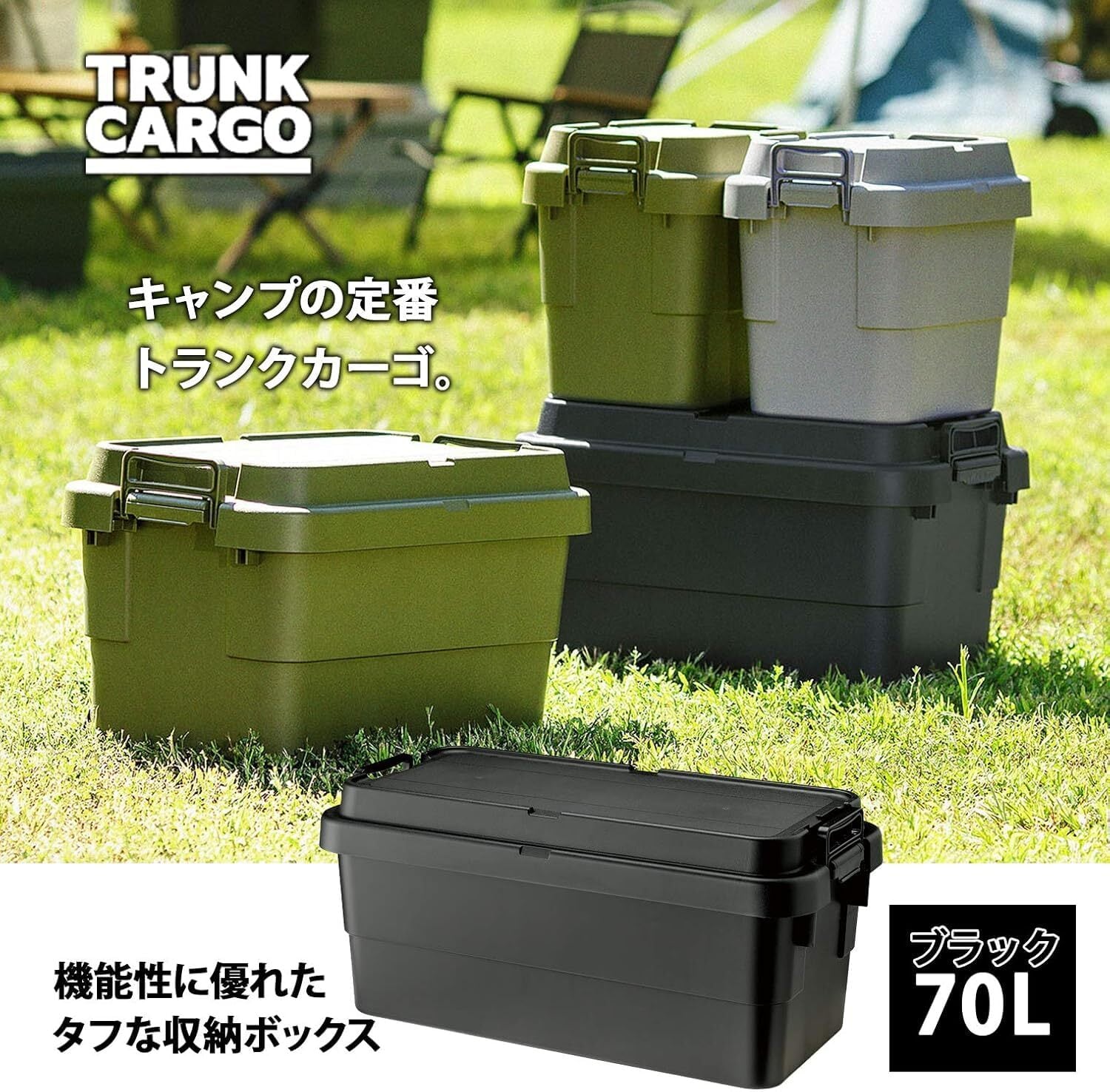 リス 収納ボックス スタッキング トランクカーゴ 70L ブラック 日本製 TC-70S
