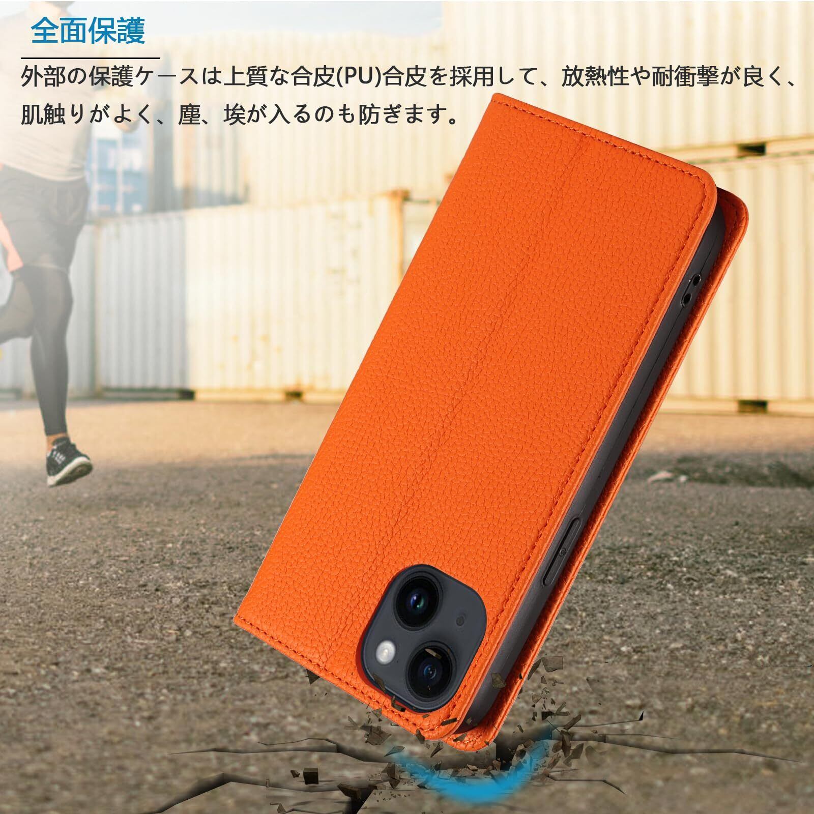 iPhone15 ケース いPhone15 ケース アイフォン15 ケース スマホケース 手帳型 携帯カバー レザー 耐衝撃 軽量 着脱しやすい 放熱性 マグネット式 カード収納 スタンド機能ケース15 対応 360度保護 PinLiSheng (オレンジ, iPhone 15) | ニコニコshops