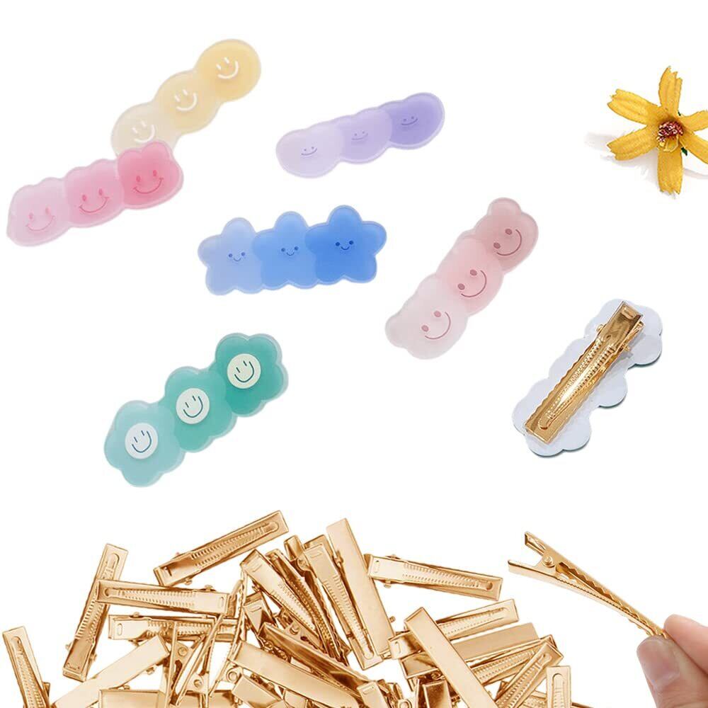サムコス 約50個入り ヘアクリップ クリップ 土台 金具 パーツ 髪留め ヘアピン DIY ハンドメイド ヘアアクセサリー デコ素材 大人 業務用 手芸用品 (ゴールド約4.6cm)