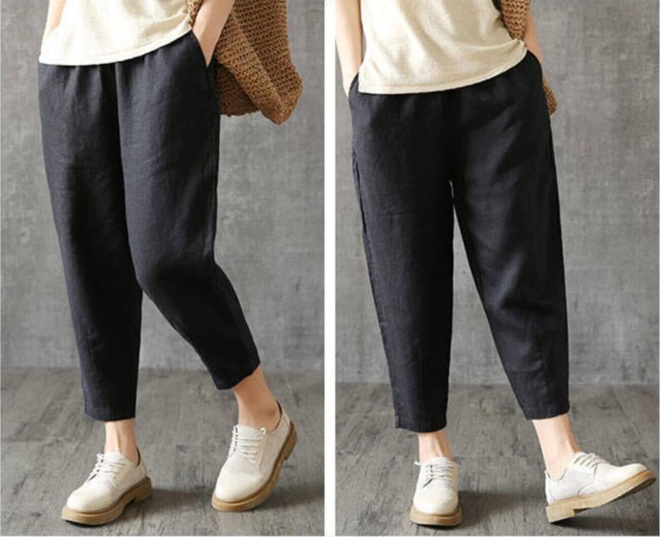 [Nestkanina] 綿麻 ワイドパンツ カジュアル ゆったり 体型カバー 無地 サルエルパンツ 7分丈 コットンリネン ガウチョパンツ レディース リラックス ワイドパンツ 涼しい ウエストゴム 春 秋 冬 夏 PNT013 | ニコニコshops