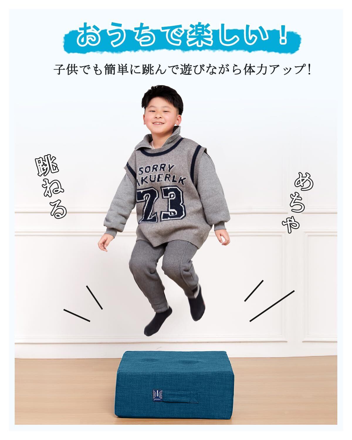 【おうち運動にピッタリ】床面滑り止め、安定した着地としっかりとした跳ね返り、静音性にも優れているためマンションなど騒音が気になる室内でも遊んで頂けます。軽くジャンプするだけで簡単なのに高い運動効果!