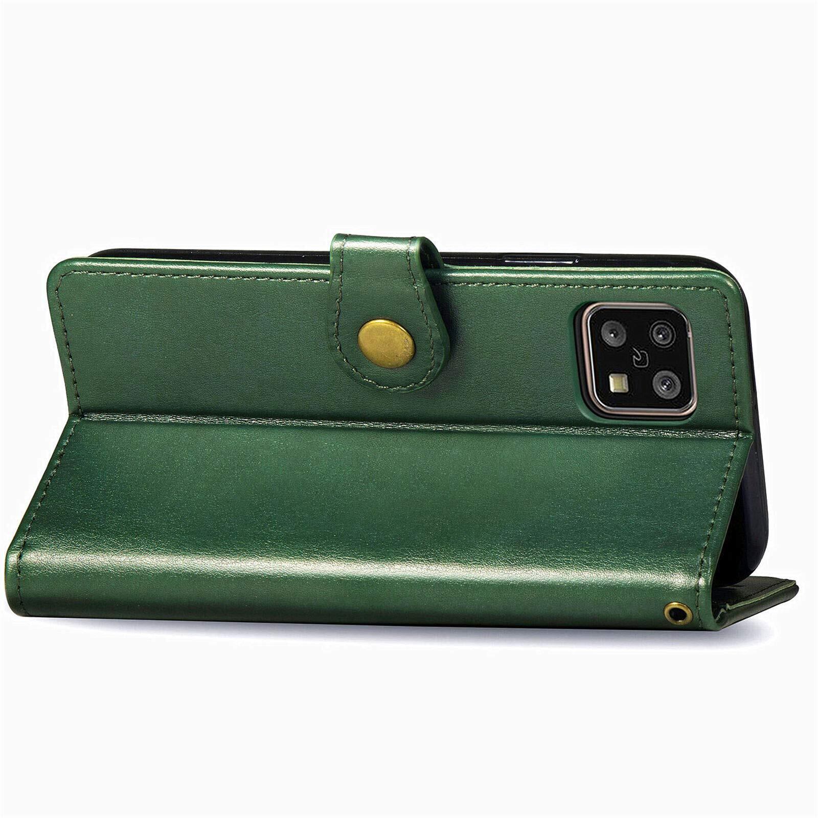 for Basio active au SHG09 for シンプルスマホ6 simple sumaho6 A201SH ケース 手帳型 ビジネスフリップノートレザーケースシンプルなレトロなファッション携帯電話ケース防水と汚れた携帯電話ケース多機能財布収納付きスタンド携帯電話シェルPUレザー保護カバー耐久性のある摩擦(グリーン)