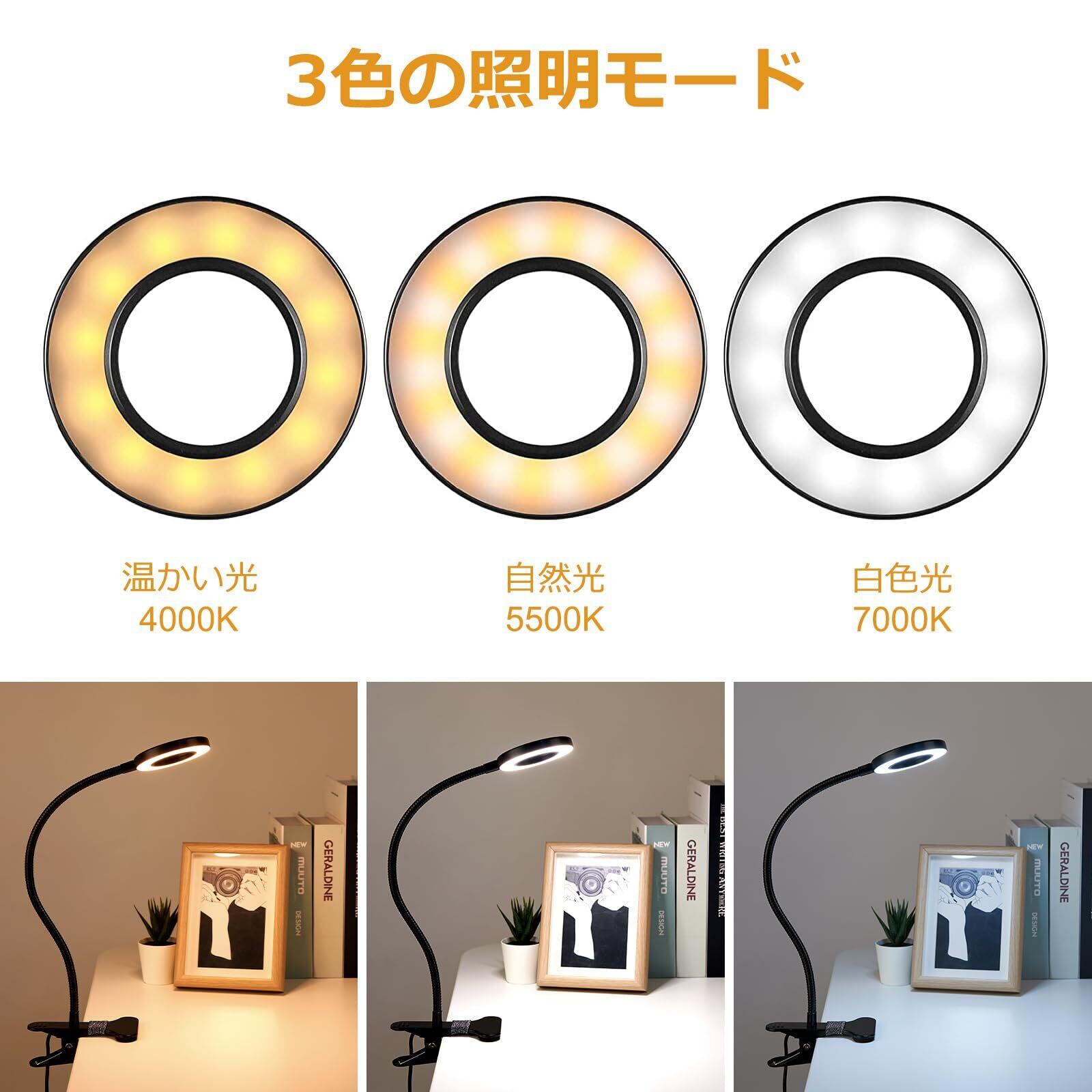 クリップライト ledライト Adoric 明るい USB給電式照明 読書灯 3色4階段調光 卓上ライト 40LED 折り畳み型 自撮りライト 会議ライト イーゼル メイクライト | ニコニコshops