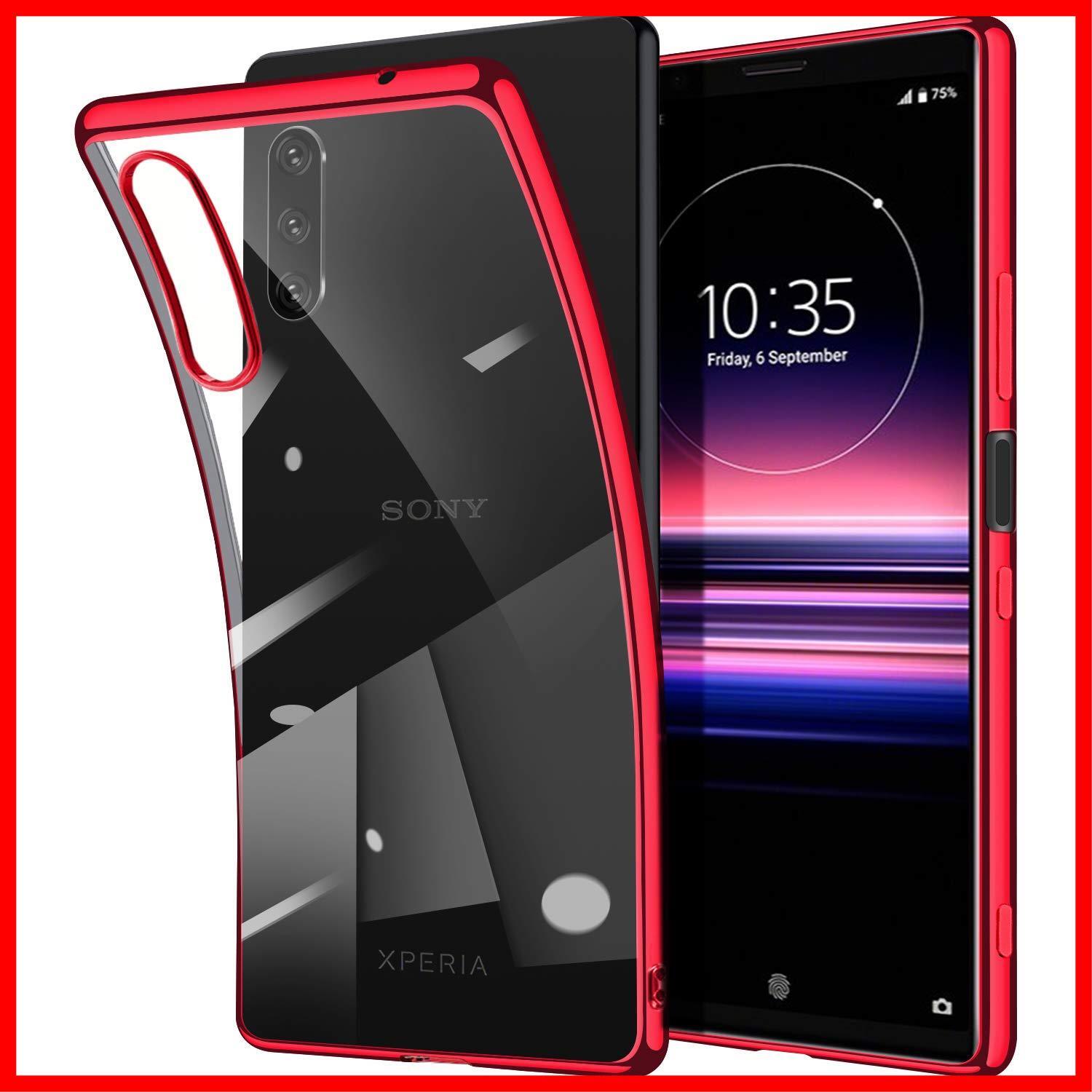 Xperia 5 ケース クリア Xperia5 SO-01M SOV41 カバー TPU 透明 シリコン 耐衝撃 スリム 薄型 ストラップホール 軽量 メッキ加工 Xperia 5 カバー (レッド)