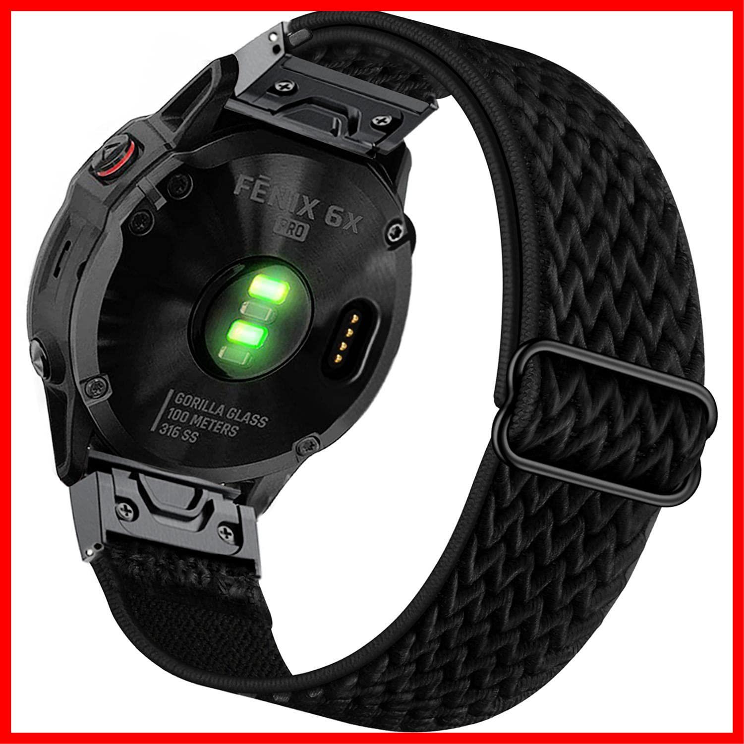 Ahayo QuickFit 26mm 交換ベルト用のガーミン Fenix 8 51mm/ epix Pro 51mm / Fenix 7X/ Enduro, 超軽量 柔らかく伸縮性のあるナイロンリストバンドストラップ に適合するFenix 6X / Fenix 5X / Tactix Delta (フルブラック) | ニコニコshops