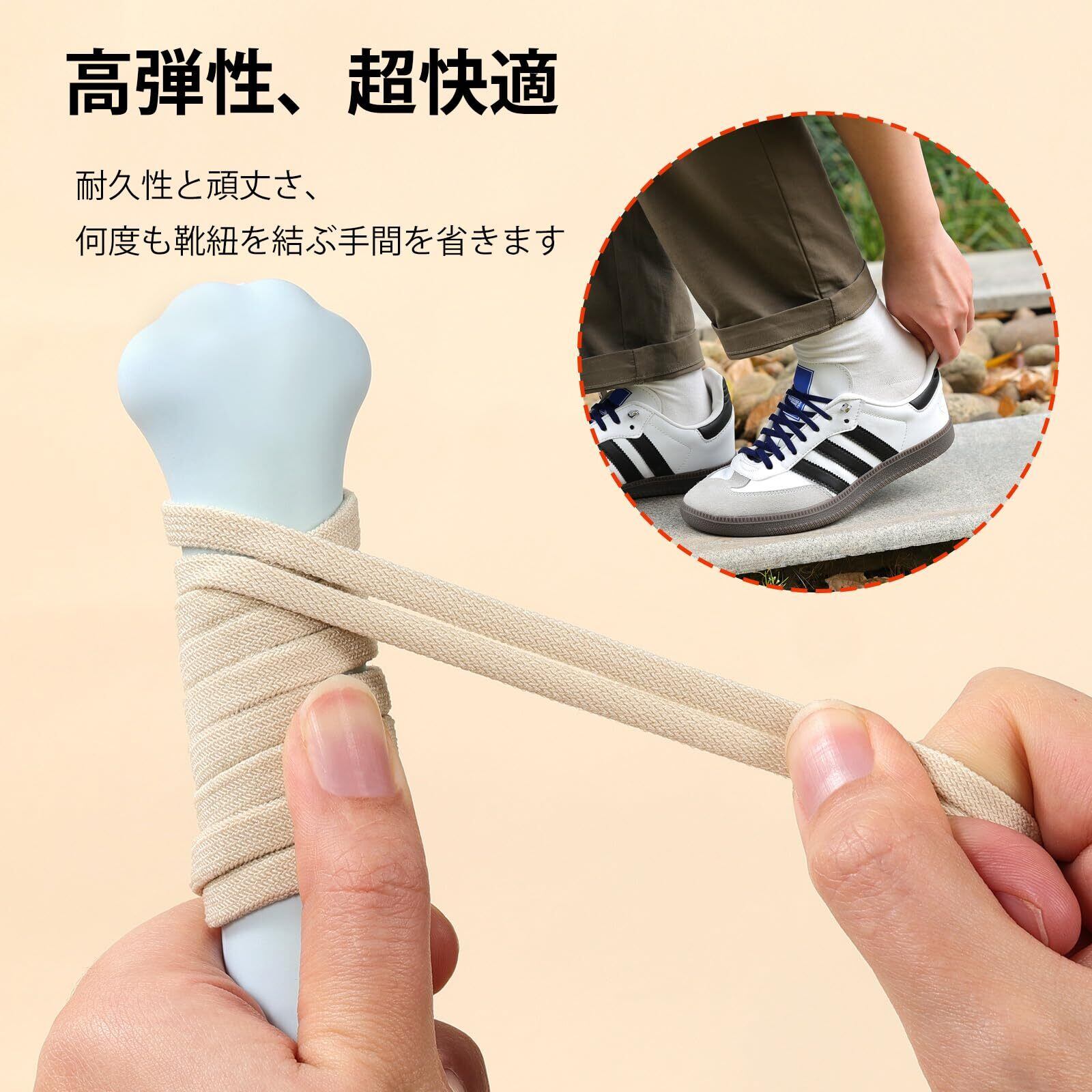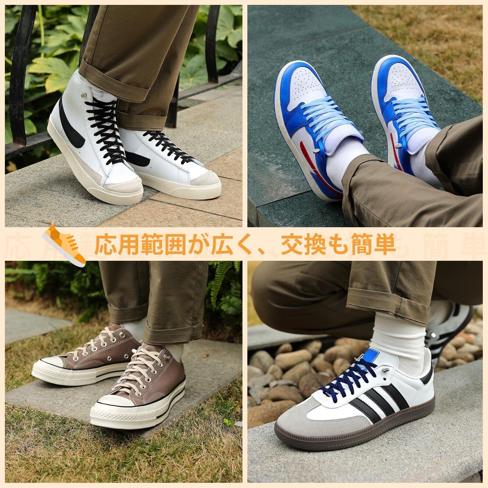 【優れた拡張性】 この靴紐は高品質のスパンデックス、ウレタン系繊維素材で作られており、二層でしっかりと織られており、伸縮性が高く、滑りにくく、丈夫な素材です,金属押さえバックルは高品質の金属素材で作られており、しっかりとした形状に鋳造されており、脱落しにくいです,美しく耐久性のある