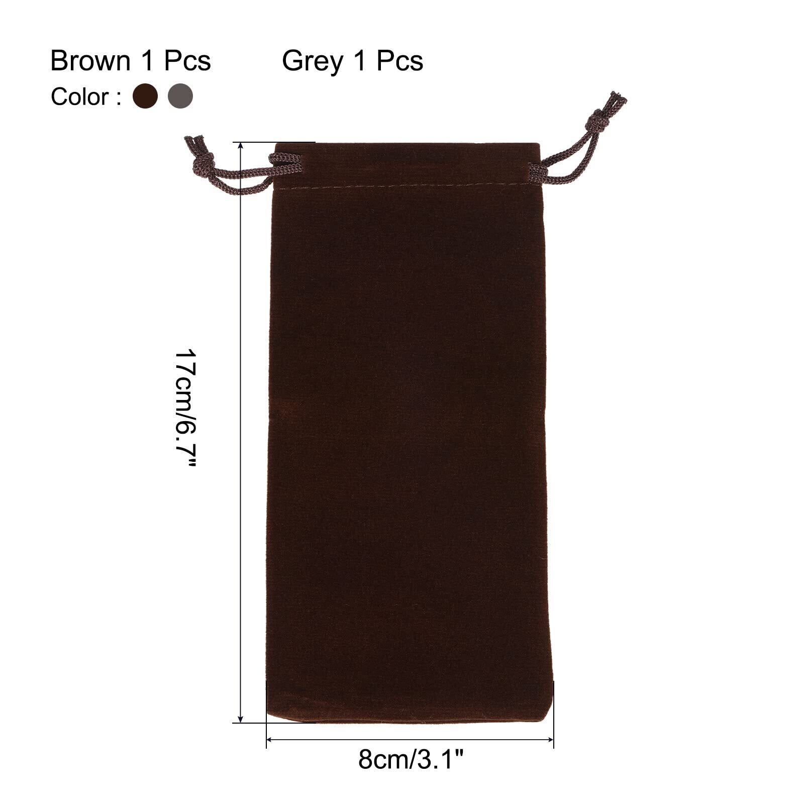 PATIKIL 巾着ギフトバッグ 17x8 cm 2個 ソフトフランネルクロス 収納ポーチ ジュエリー メガネ 結婚式用 ブラウン グレー