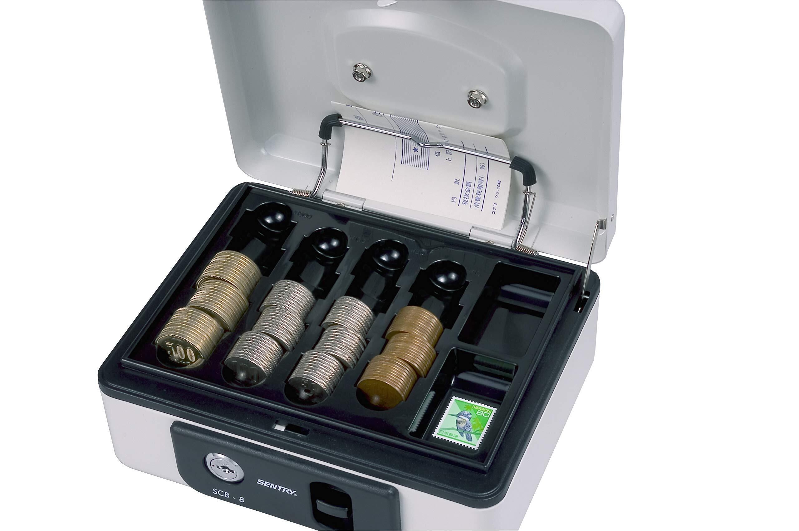 SENTRY (セントリー) 金庫 手提げ金庫 小型 キャッシュボックス 収納ボックス 鍵付き A6 キーロック コインケース ワンタッチオープン ライトグレー SCB-8