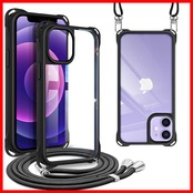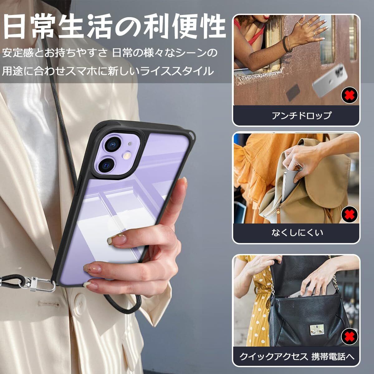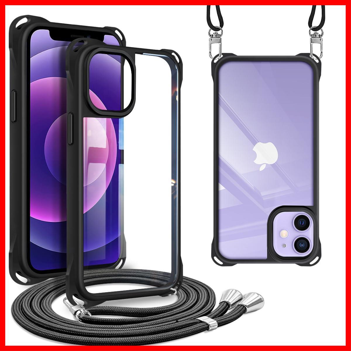 iPhone 12 ケース ショルダー 首掛け 肩掛け ストラップ付き iPhone12pro カバー 紐付き 斜めがけ 耐衝撃 4WAY 調節可能な ネック 縄掛け TPU 薄型 軽量 iPhone12/12pro スマホケース ブラック | ニコニコshops