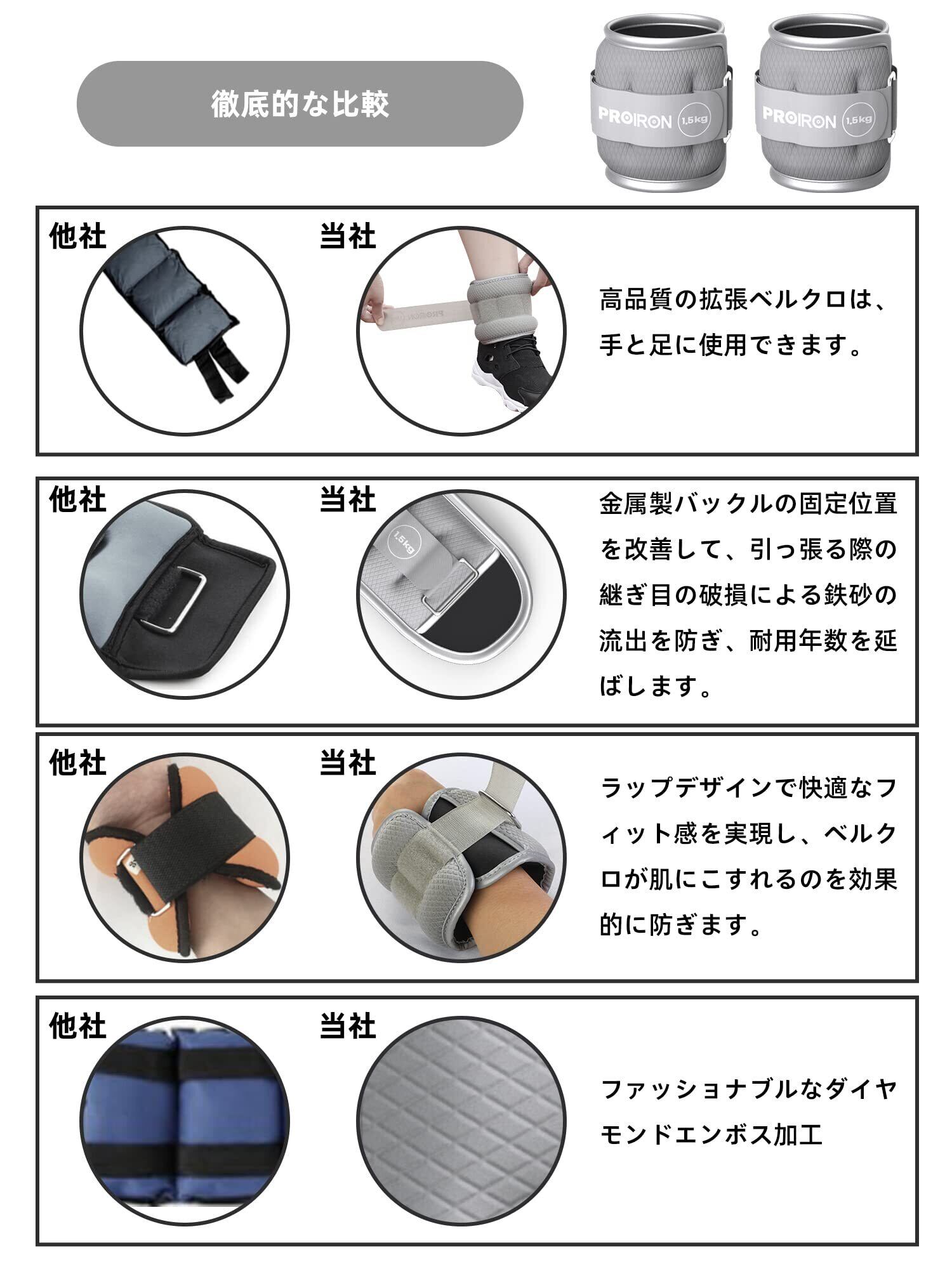 PROIRON アンクルウエイト リストウェイト パワーアンクル 0.5kg 1kg 1.5kg 2kg 超快適 装着感 2個セット 足首 トレ 運動不足解消