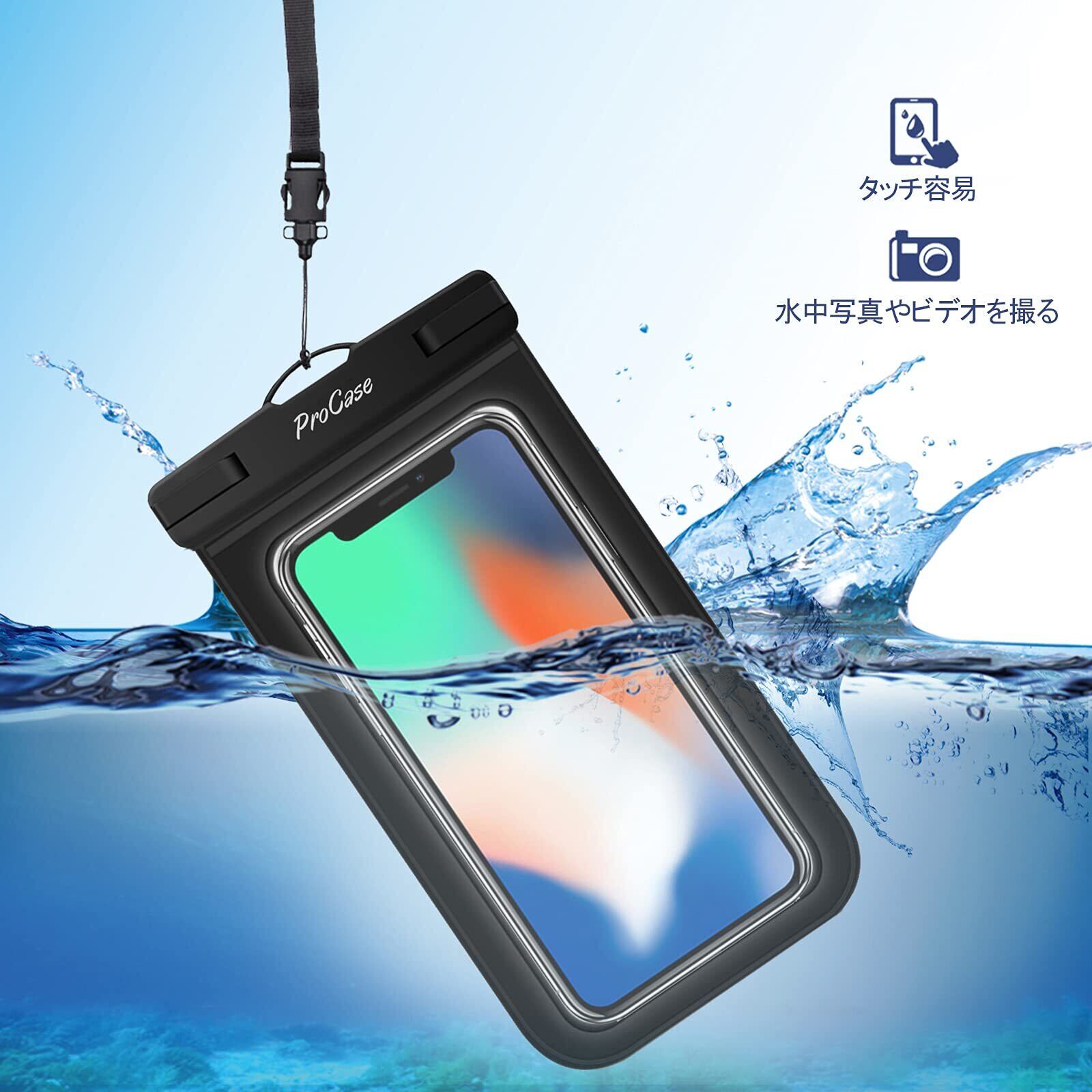 ProCase [2個セット]防水ケース IPX8認定 携帯電話用ドライバッグ 最大7.0”スマホに対応可能 適用端末:iPhone 14 13 Mini Pro Max・iPhone 12・11・XS・XR・8・Android - ブラック