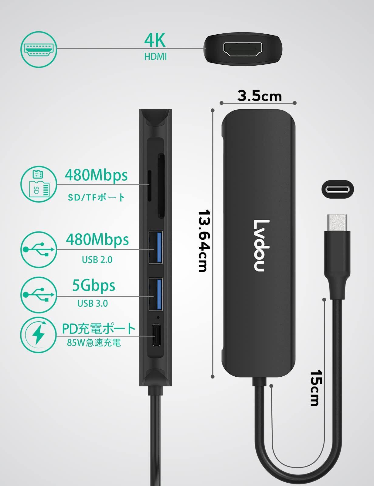 Lvdou USB C ハブ アダプタ 6-in-1 USB ハブ Type-C 100W PD充電・4K HDMI・MicroSD/SDカードリーダー搭載|MacBook Pro/Air、iPhone 15/16、iPad Pro、Surface Pro 9/8/7/Go、HP、DELL、Galaxy Book、Chromebook対応 ノートPC・タブレットPC用|適格請求書発行可 | ニコニコshops