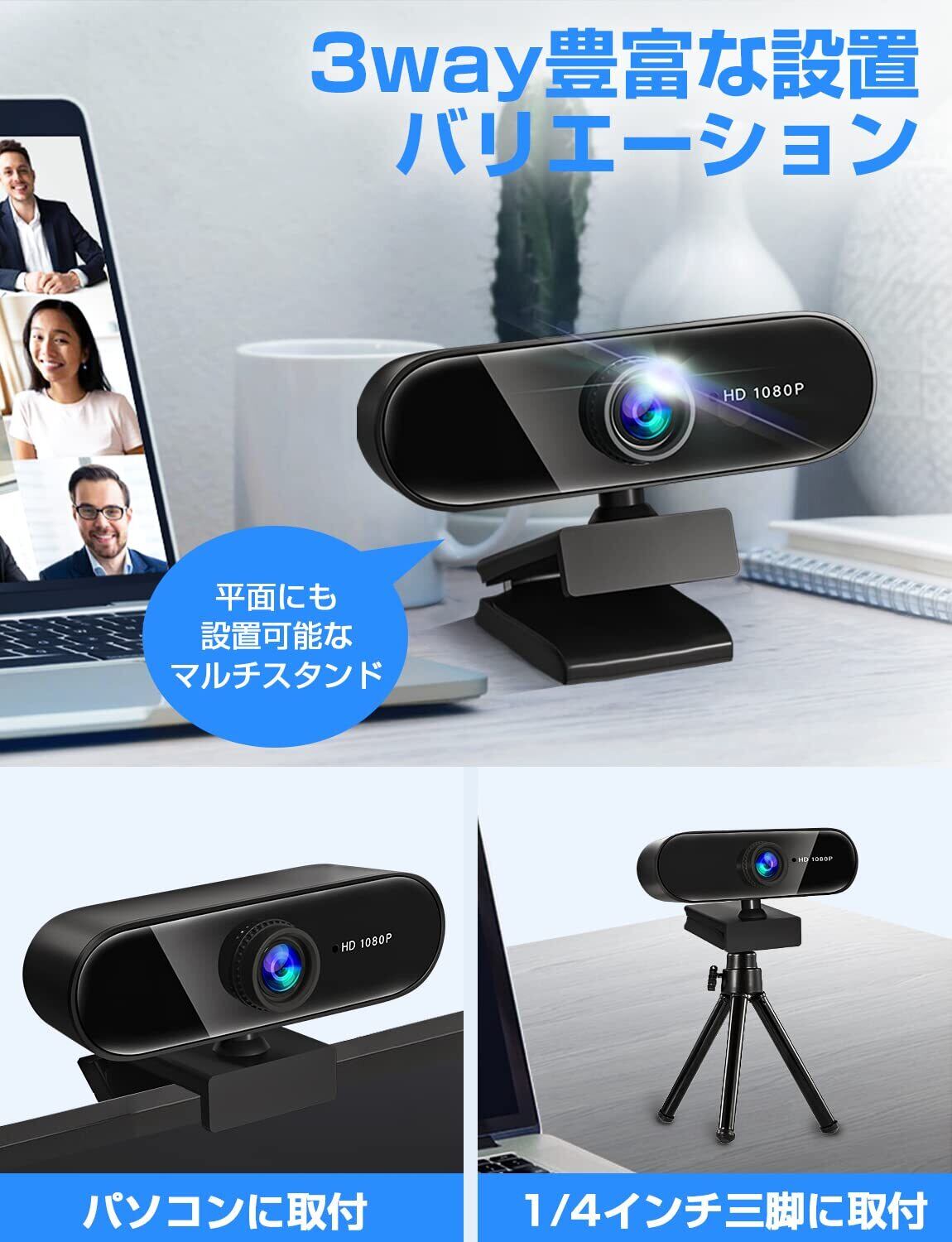 Webカメラ ウェブカメラ フルHD 1080P 高性能 200万画素 マイク内蔵 USBカメラ 挿すだけですぐ使える 自動光補正 超広角95° クリップ/スタンド式 三脚対応 外付けwebcam PCカメラ 幅広い互換性 ZOOM/SKYPE/WEB会議/ビデオ通話/テレワーク パソコン Windows Mac Chrome 日本語説明書付属