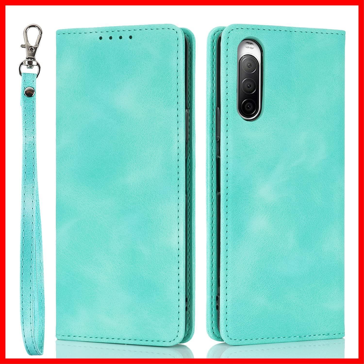 Havaya SO-41A ケース Xperia10II ケース SOV43 ケース 手帳型 耐衝撃 au SONY ソニー エクスペリア10ii カバー 第2世代 docomo モバイル ワイモバイル SoftBank マグネット式 カード収納 レザー スエードの質感-ミントグリーン
