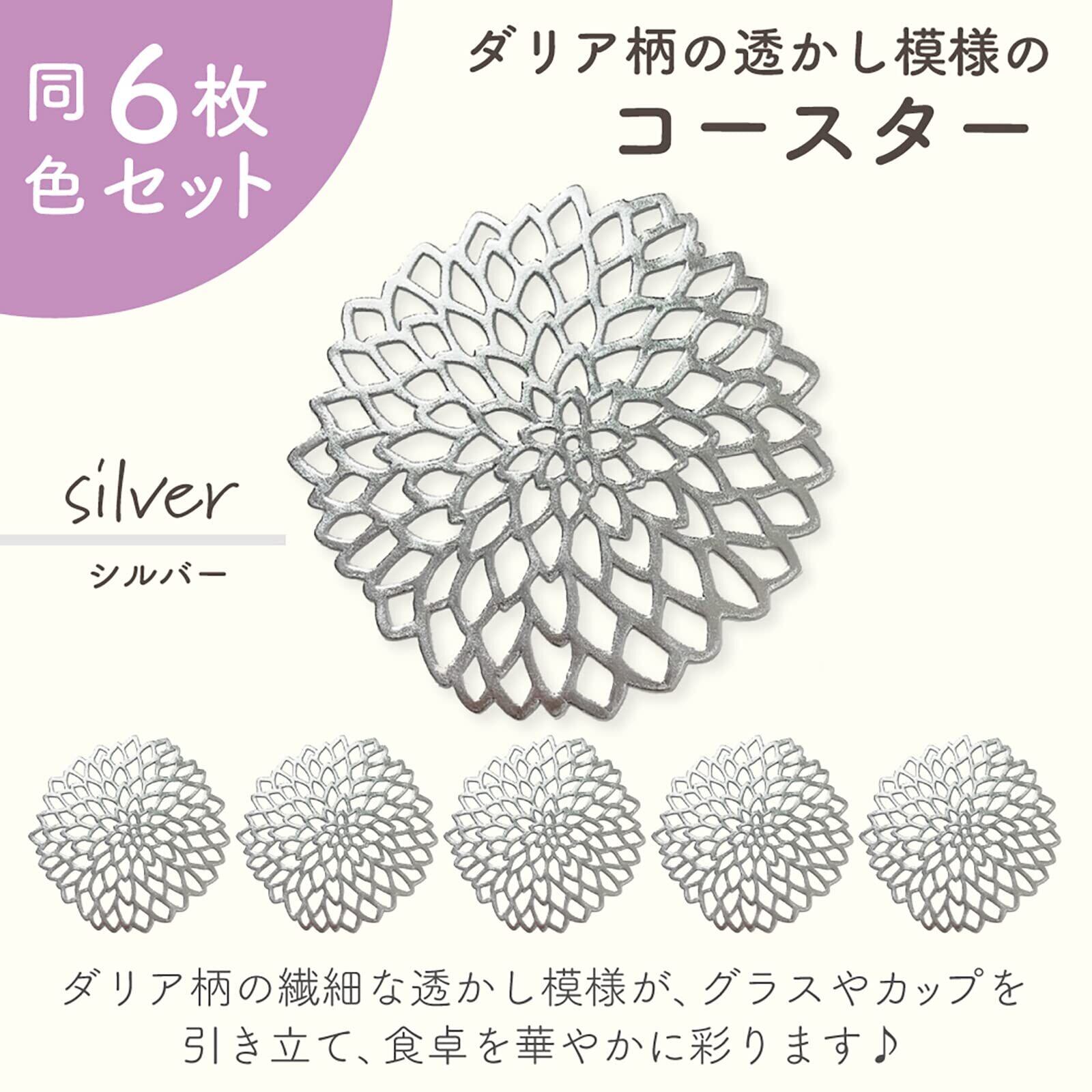 ダリア柄の繊細な透かし模様がグラスやカップを引き立て、食卓を華やかに彩ってくれるコースター同色6枚セット。