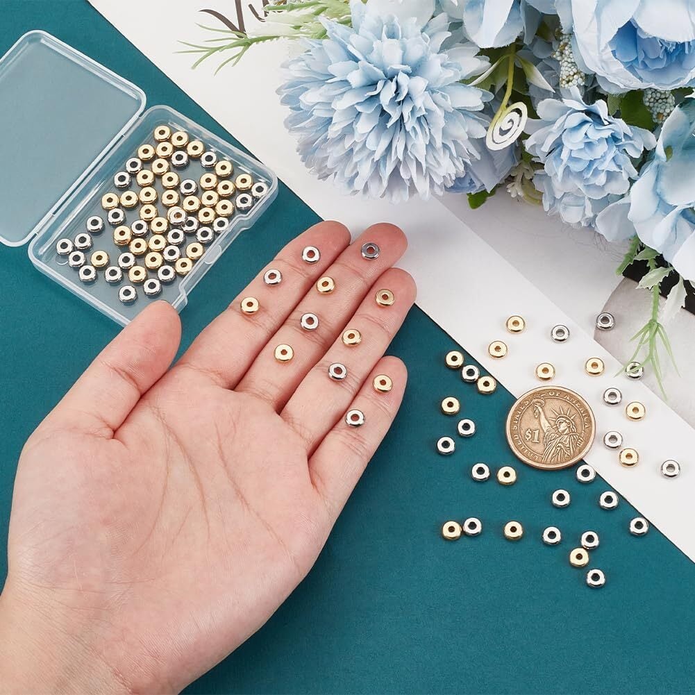 サイズ&入り数:ビーズ:直径約6mm、2mm厚さ、穴:1.8mm、2色、50個、合計100個;素材:304ステンレススチール;あなたの想像力でこれらのビーズをDIYのファッションアクセサリーに使うことができます!