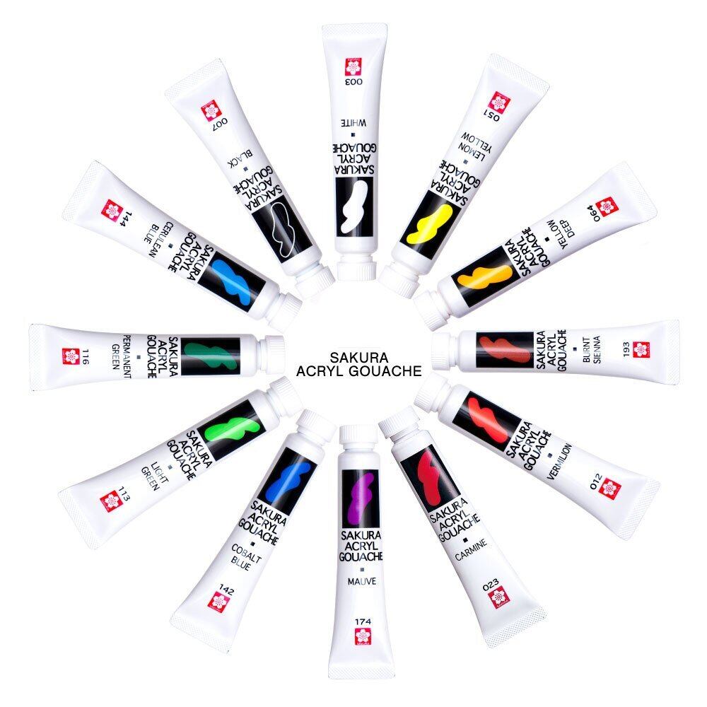 サクラクレパス 絵の具 アクリルガッシュ 12色13本(白2本)入り AGW13