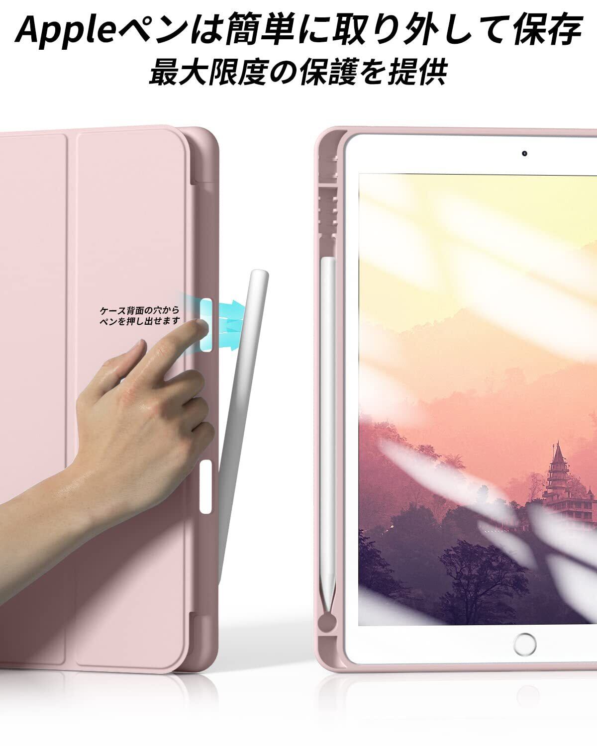 KenKe iPad 9.7 インチ 第6/5世代 (2018/2017) ケース オートスリープ/ウェイク機能対応 Apple Pencilペン収納・ホルダー付 スマートカバー ソフト TPU 薄型 耐衝撃 軽量 三つ折りスタンド (ピンク)