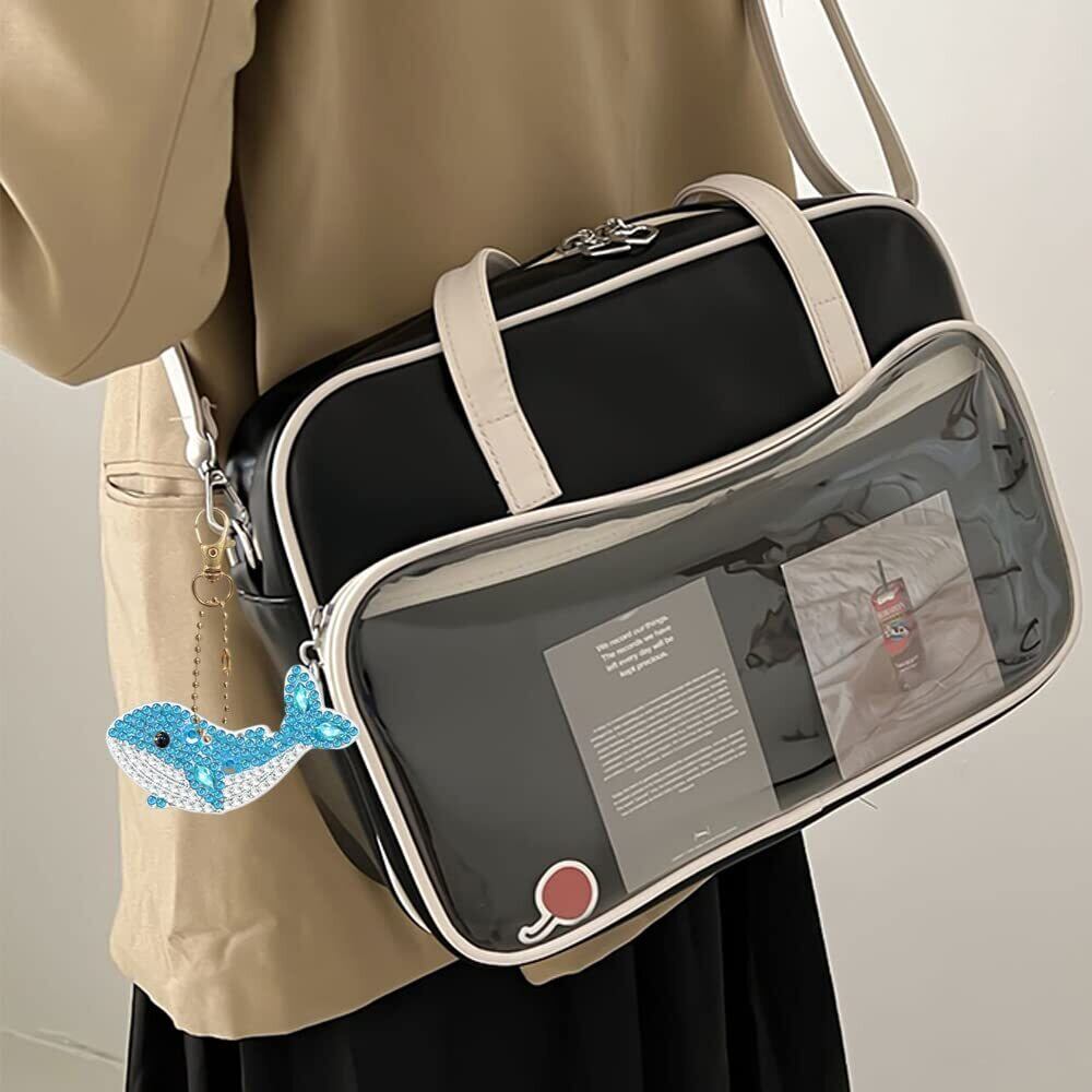 Mikankawa ダイヤモンドアート ペンダント キーホルダー 5個入り DIY 手工芸品 手作り ダイヤモンド塗装 かわいい 初心者でも楽しめる プレゼント (鯨)