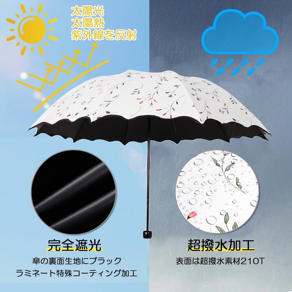 日傘 uvカット 100 遮光 折りたたみ 日傘兼用雨傘 レディース 折り畳み 遮熱 断熱 おりたたみ傘 (花柄)