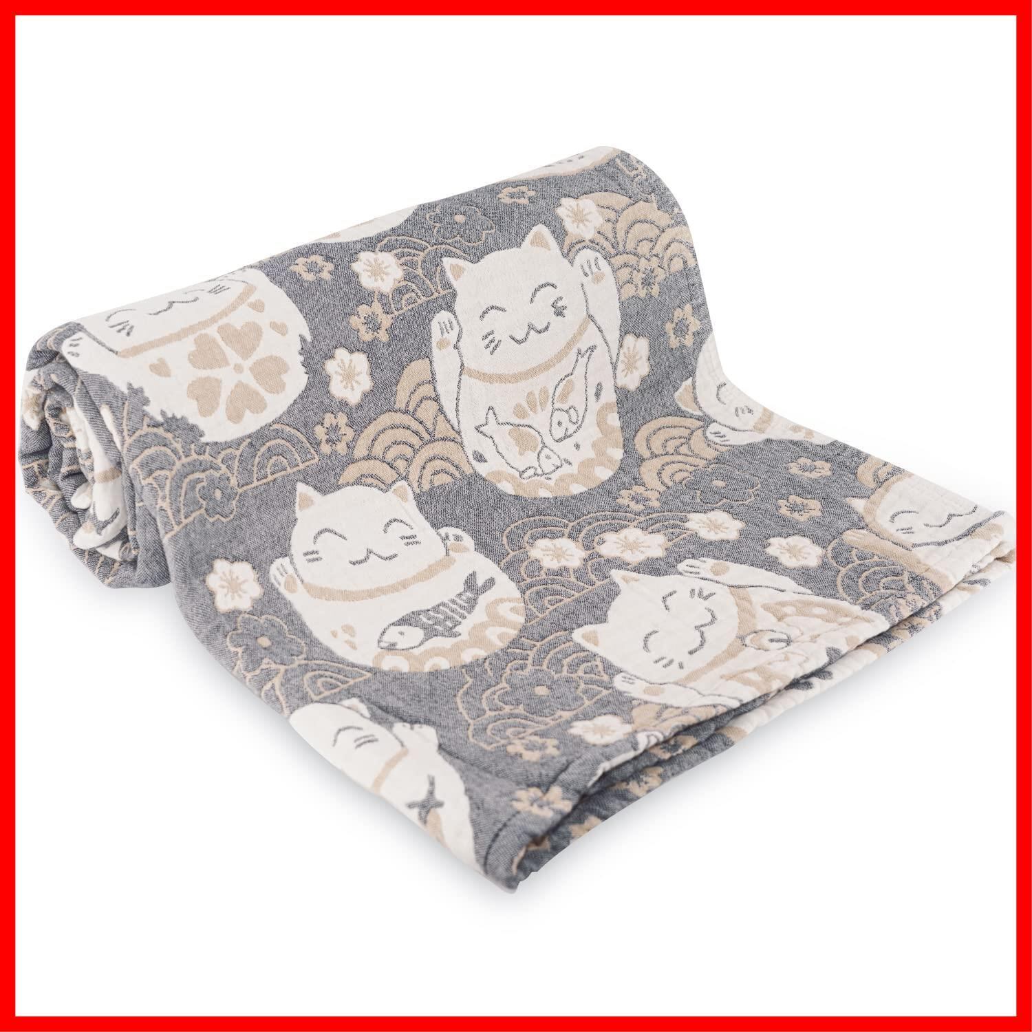 Vanxing ガーゼケット タオルケット シングル セミダブル 綿100% 4重ガーゼ 綿毛布 肌掛け お昼寝 やわらか 吸湿通気 夏快適 洗える150x200cm (招き猫・ブルー) | ニコニコshops