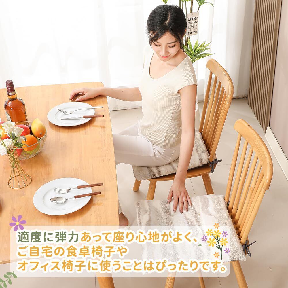 【椅子用紐付きシートクッション 】背もたれに結ぶひもが2本をついています。立ったり座ったりした際のズレ、落下防止に役立ちます。お子様でも安心してご利用いただけます。