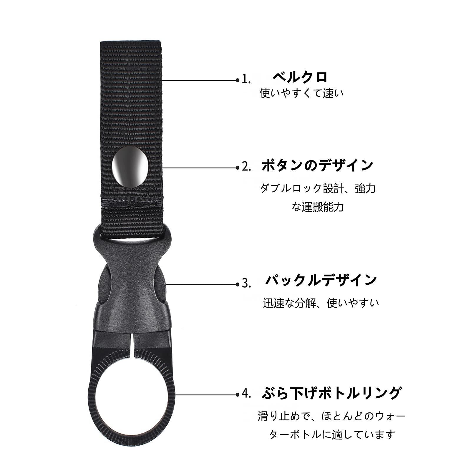 SHULLIN 4点セット ドリンクホルダー ペットボトルホルダー ペットボトルフック ナイロンボトルホルダー 轻量 取り外し可能 携帯便利 使え簡単 アウトドア 登山 キャンプ ハイキング 登山 アウトドア レジャー 水分補給 キャンプ 用品 (ブラック レッド ブラウン アーミーグリーン)