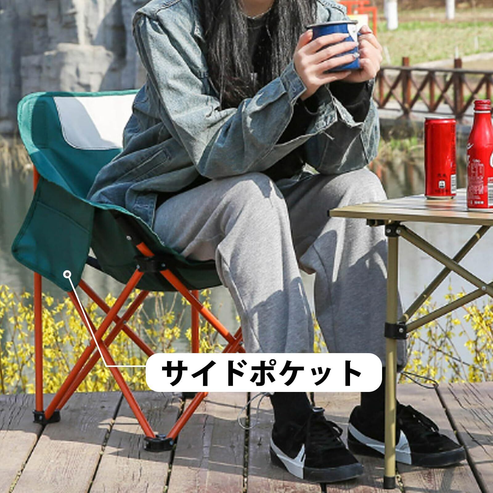 【利便性が高い】軽量で持ち運び便利ながら、組み立ての手間がない、数秒内で折り畳んで収納できます。折りたたんだ際のサイズもコンパクトで、車のラゲッジスペース(荷室)にすっきりおさます。機能面では、サイドポケットを備えていたので、小物の収納に便利です。ロットにより、一部のチェアはバックポケットを装備されますが、チェア全体の耐久性に影響を与えませんので、ご安心ください。