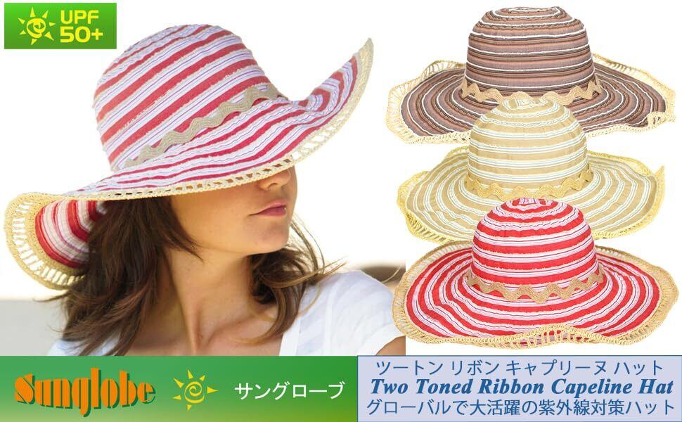 [サングローブ] UVカット 帽子(女性用) - レディース ハット - ツートーン リボン キャプリーヌ カラー:パープル、ナチュラル、チョコレート、レッド