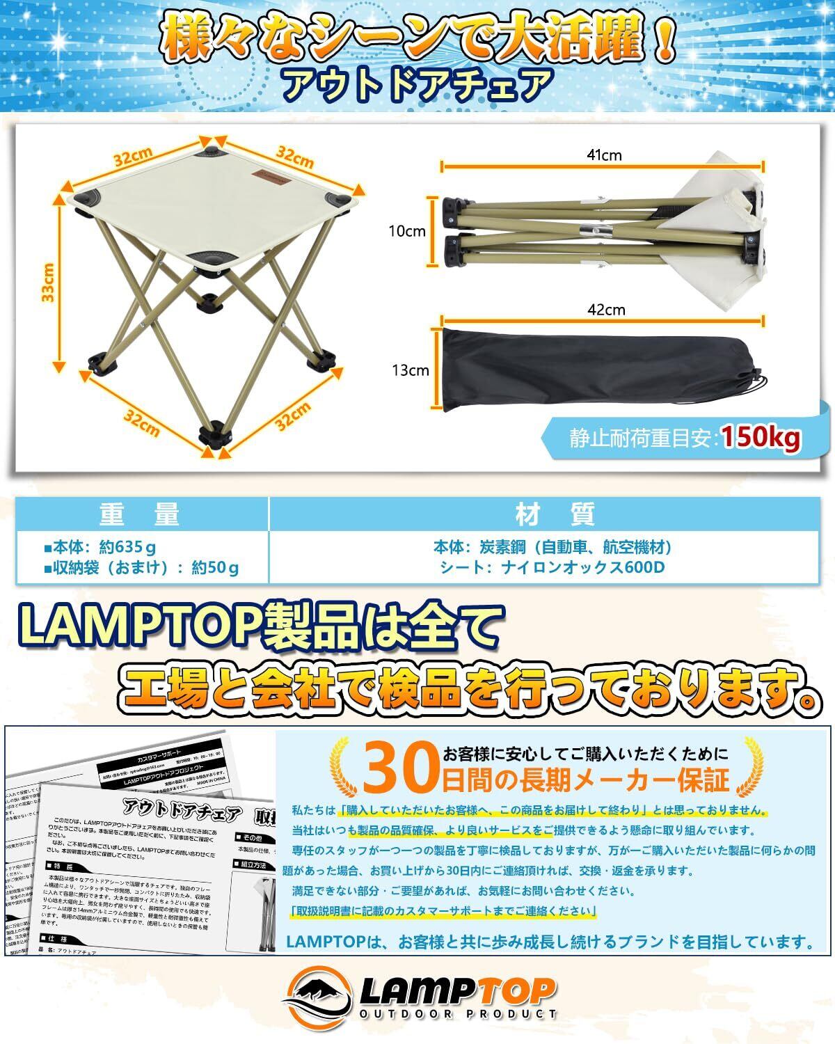 【一秒開閉】LAMPTOP アウトドアチェア 折りたたみ椅子 軽量 コンパクトイス キャンプ椅子 耐荷重150kg 座面32×32cm 高さ33cm 収納バッグ付き 携帯便利 お釣り バーベキュー キャンプ 焚き火 登山 お花見(ページュ)