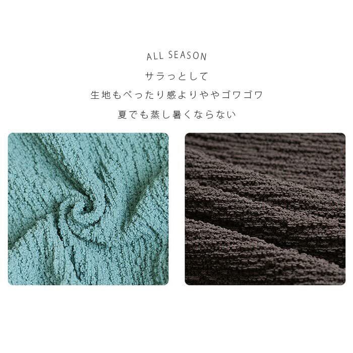 【高級感あるストレッチ素材】 しぼ感がやさしい風合い、伸縮性の高い素材を使用しています。特殊な織り方で作られた縦横に伸縮する生地が椅子にぴったりフィット。 通常のチェアにかぶせるだけで気軽に模様替えができます。綿混素材を採用しており、肌触りがよく季節を問わず、いつでも楽しんで暮らします。