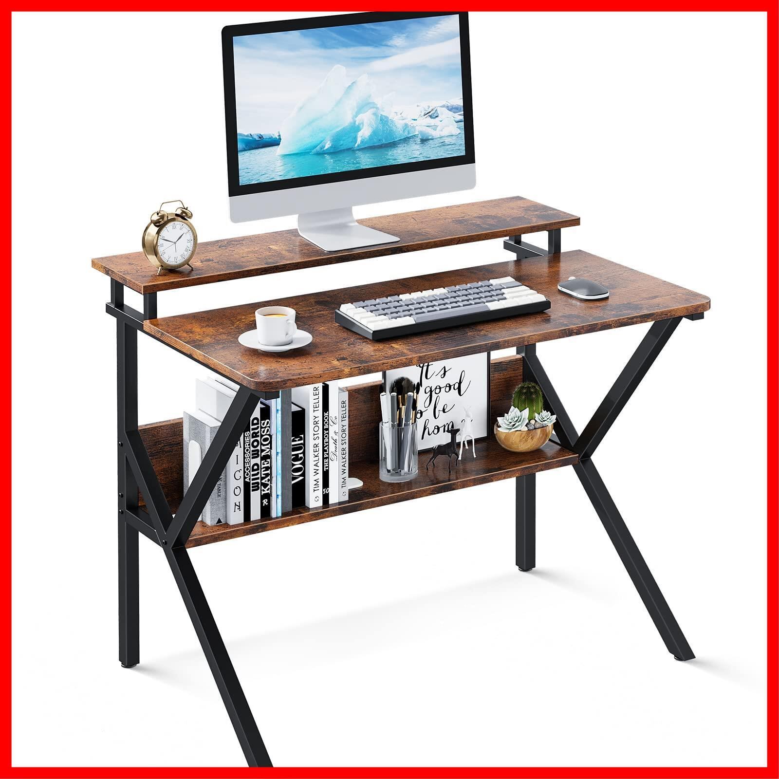 【モニター台付き、卓上の使用面積を広げる】上部のラックは正しい座り姿勢に導いて、首や肩への負担を軽減して、長時間座ってもラクラク~2段構造の板なので、実の使用スペースは同じの奥行の天板よりもっと大きく、仕事の効率が大幅にアップ。