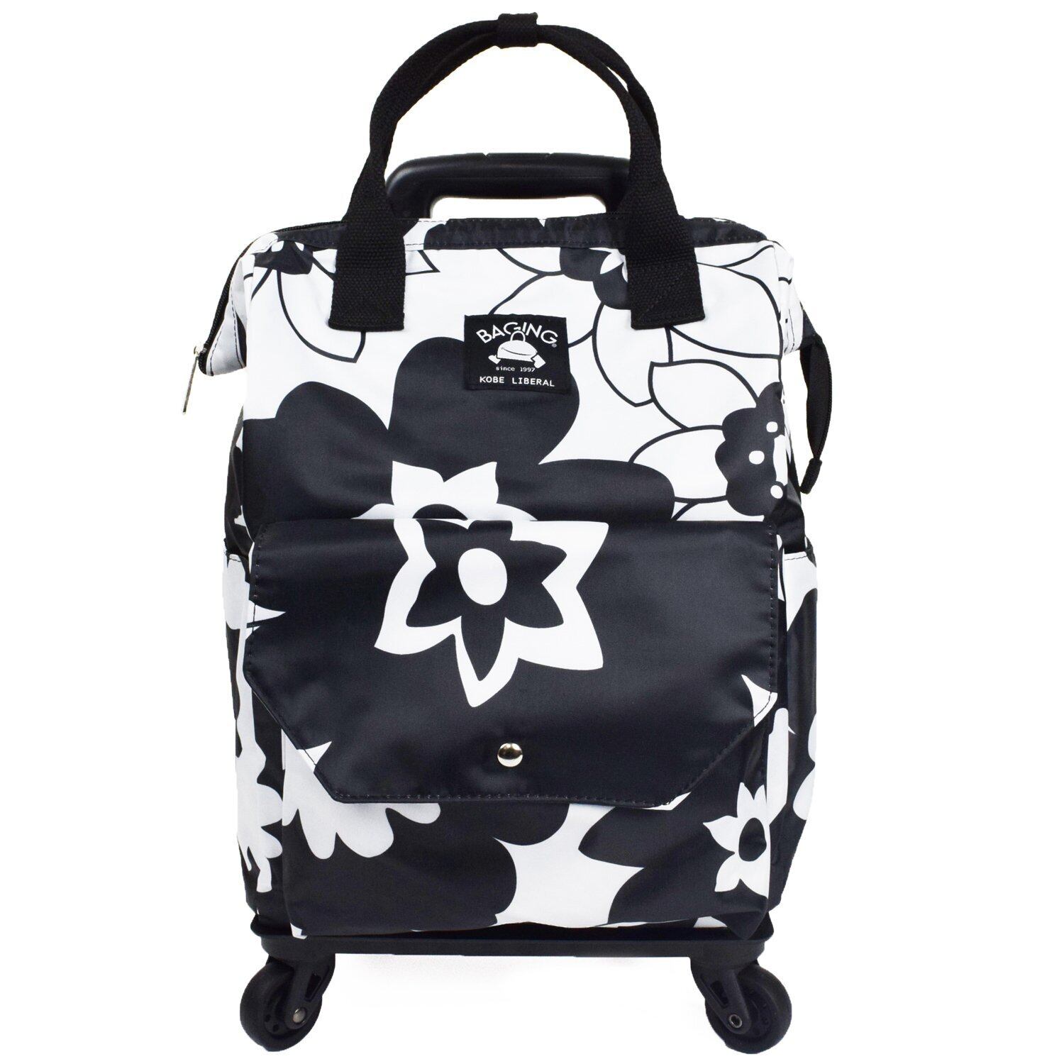 [神戸リベラル] ショッピングキャリー リュック カート キャリーバッグ 横押し 機内持ち込み 完成品 903 (ブラックフラワー)
