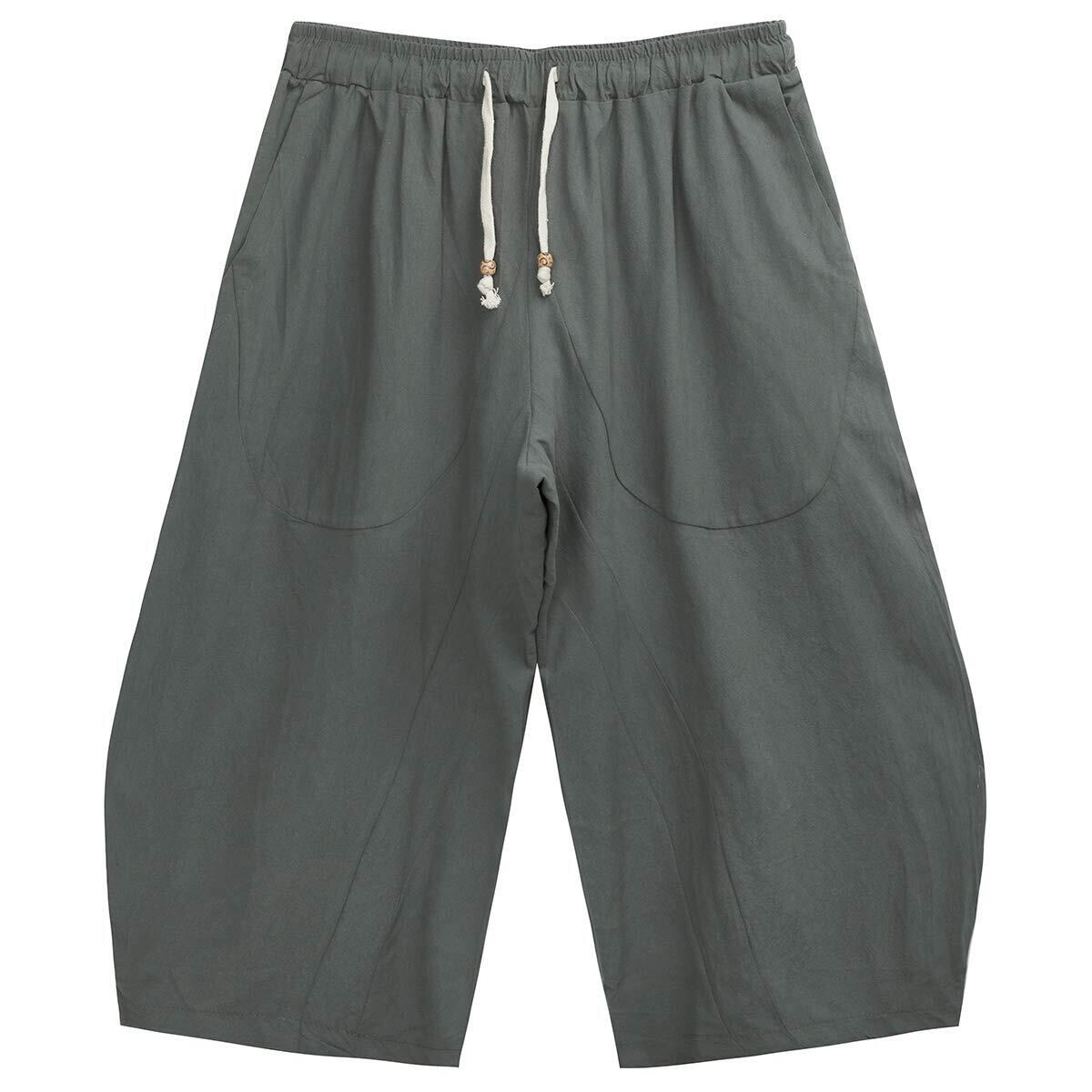 [FOMANSH] ワイドパンツ メンズ サルエルパンツ 綿麻 大きいサイズ 無地 カジュアル ガウチョパンツ 7分丈 ゆったり 夏